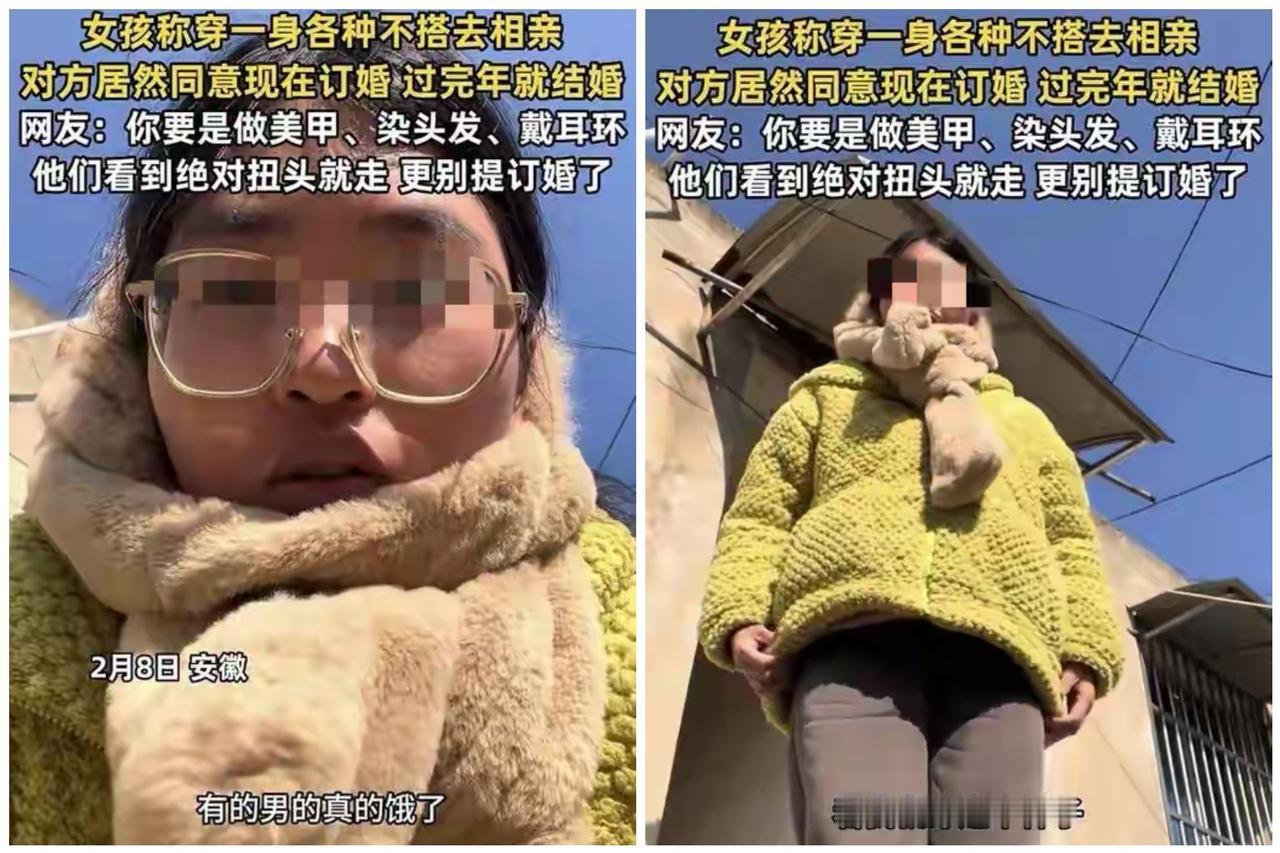 "认知撕裂。"安徽一女生故意穿得土里土气去相亲,本想劝退对方,结果男方直接敲定订