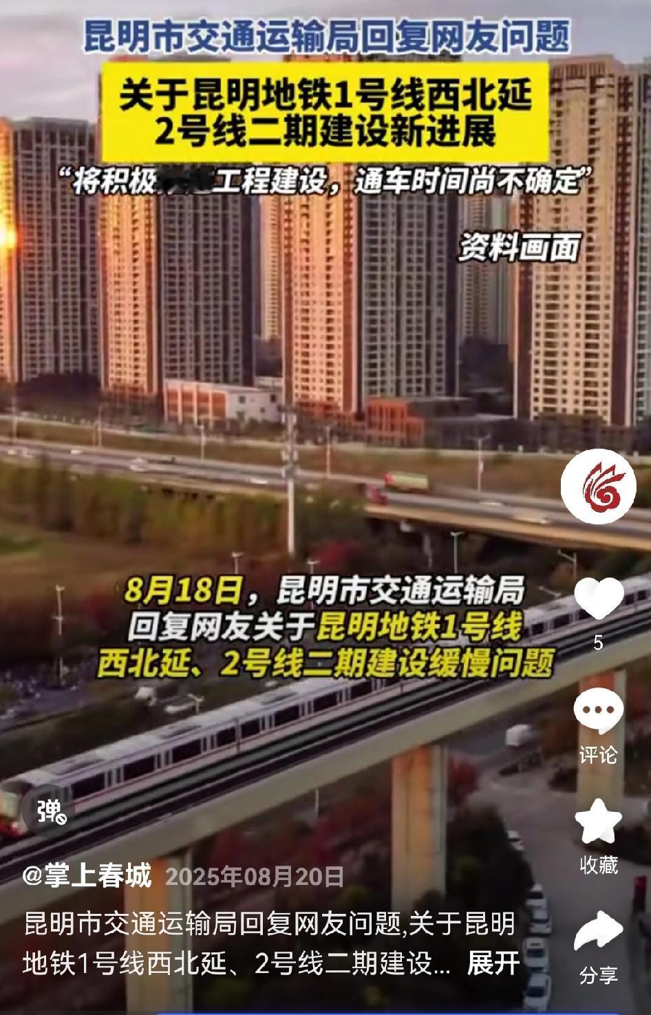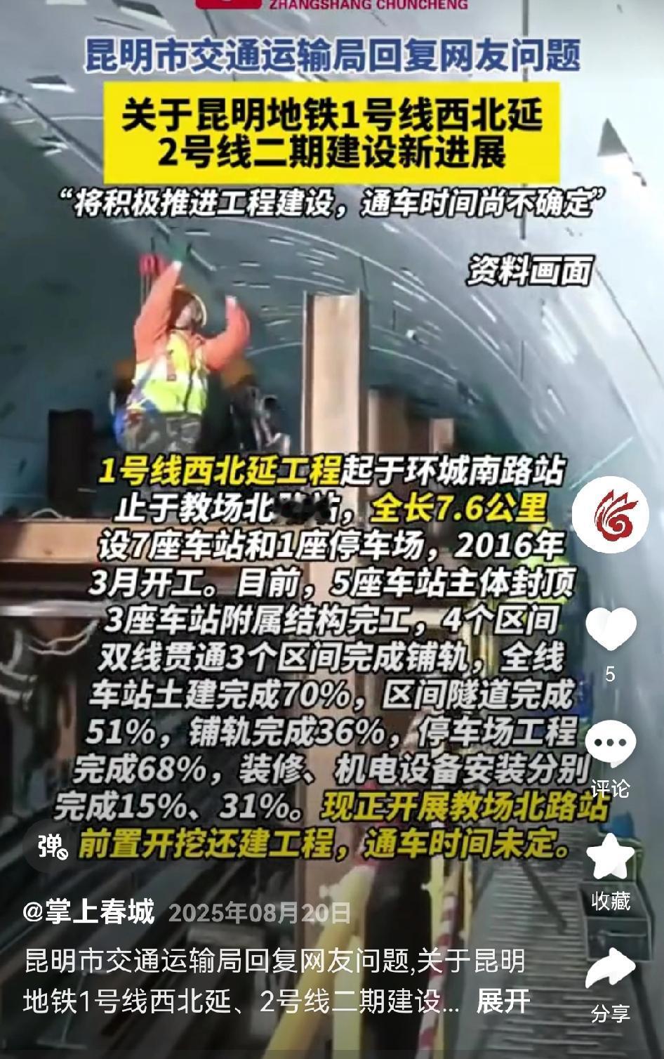 【昆明网民关注昆明地铁1号线西北延及2号线二期建设进度如何?】 ✍📩昆明网民