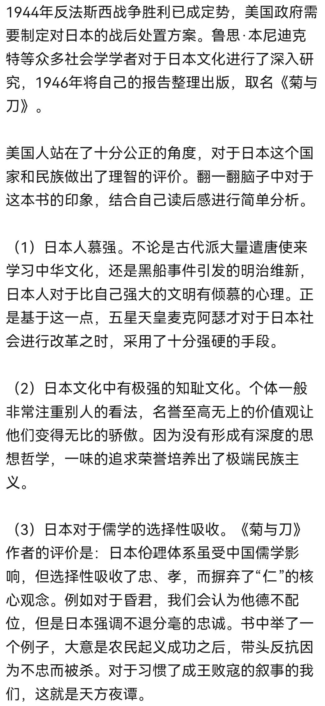 对于中国,日本侵华是不义之战,同样一场战争,竟被日本描绘成绝对正义,从《菊与刀》