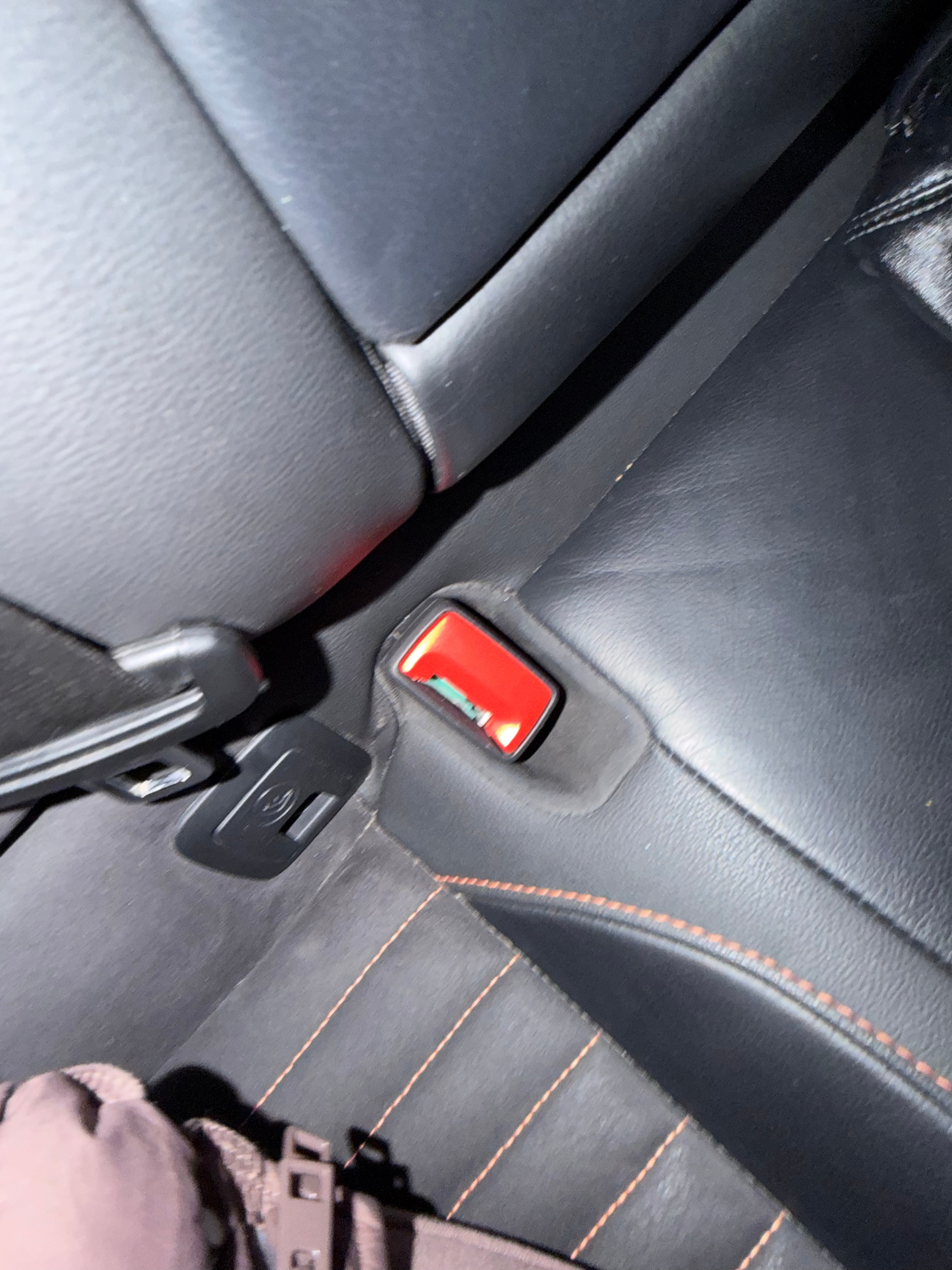 遇事不要慌 先发条微博我的耳钉刚才掉到了车里这个安全扣的缝儿里我都看见它了结果用手一扒拉直接进去了………我是不是得把座椅掀开了
