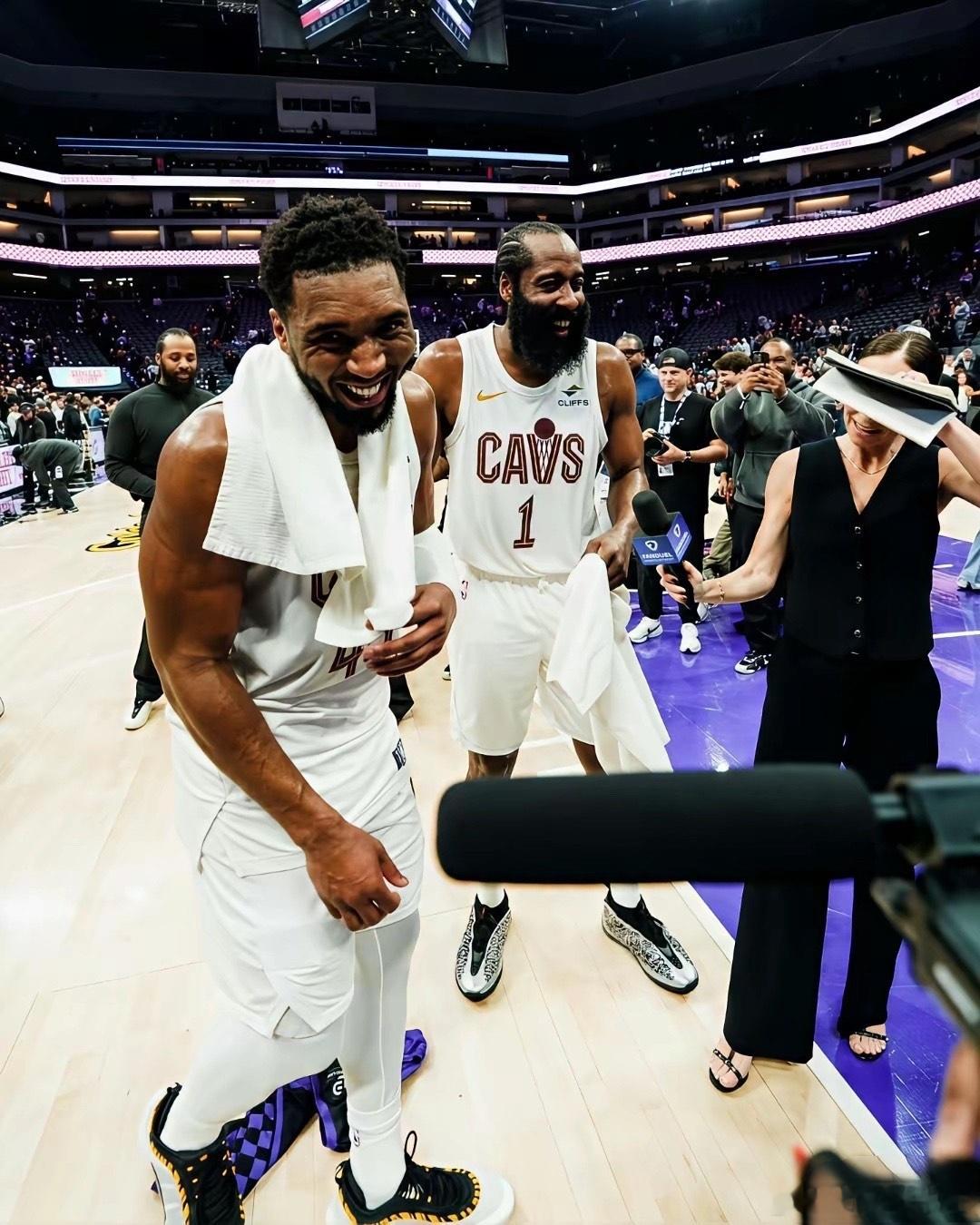 米切尔要爱死这个詹姆斯哈登了。骑士队跟掘金队的比赛,最后决胜阶段,哈登一个标志性撤步三分打平,然后一个防守让对方没打成功,最后米切尔罚球准绝杀掘金队。这个场景,米切尔这个赛季都没看到过,基本上都是米球一个人拼到最后惜败。骑士队的哈登加米切尔的后场双枪,已经逐渐展现出东部最强组合的意思了。但是,这才是哈登来的第二场,且看且沃靠吧。这赛季的骑士队有的搞。nba骑士哈登加盟骑士后2连胜
