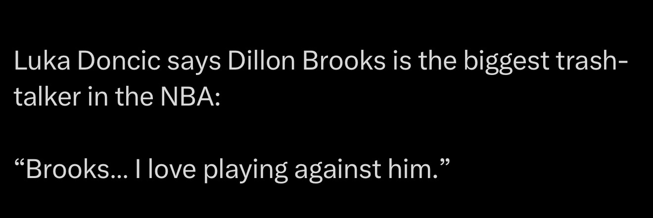 东契奇称狄龙·布鲁克斯是NBA最大的垃圾话高手:“布鲁克斯……我很喜欢和他比赛。