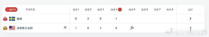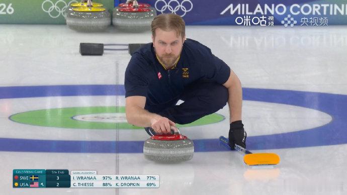 🥌米兰冬奥会冰壶混双决赛,美国对阵瑞典,赛程过半,瑞典队在第二局后手拿到2分,目前瑞典3-2 暂时领先。