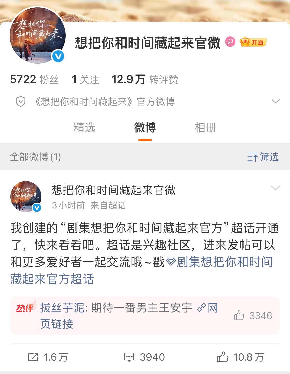 想把你和时间藏起来官微的第一条博文,都是王安宇粉丝和章若楠粉丝🈳,即将官宣啦!