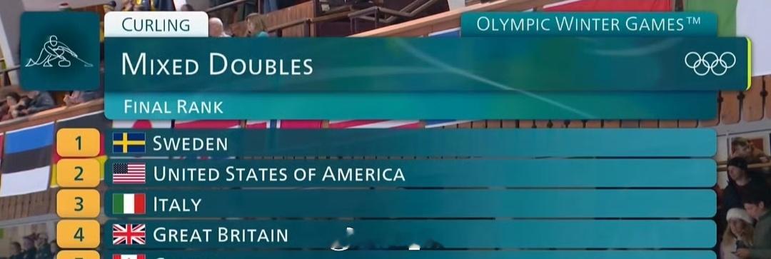 2026年米兰科尔蒂纳冬奥会 混双前三🥇🇸🇪瑞典🥈🇺🇸美国🥉🇮?