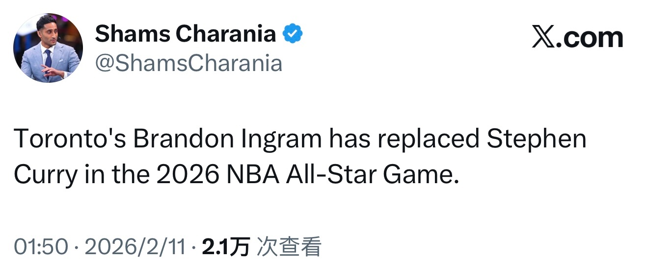 Shams:英格拉姆顶替受伤的库里,入选今年全明星。