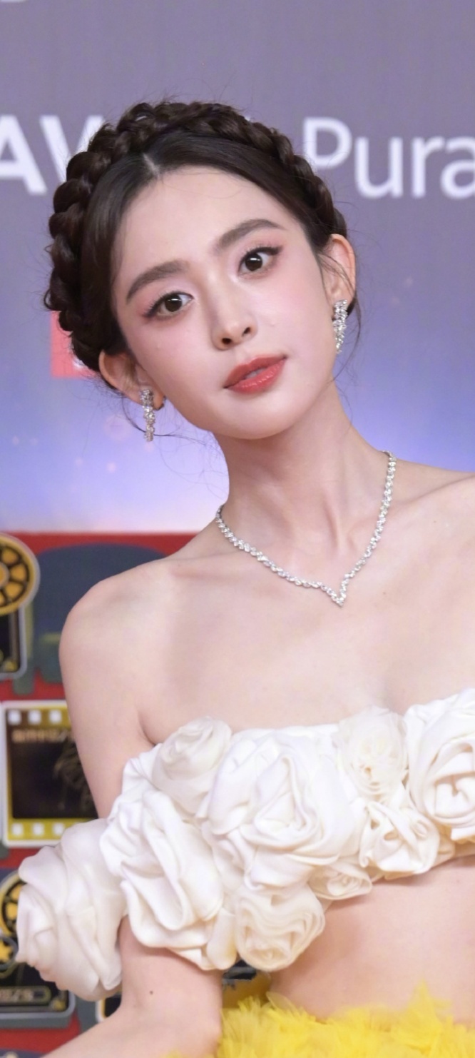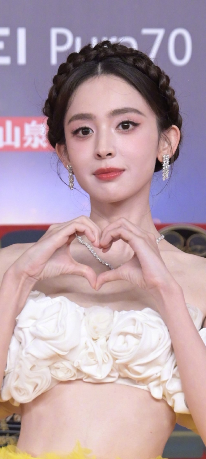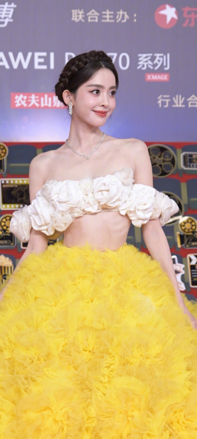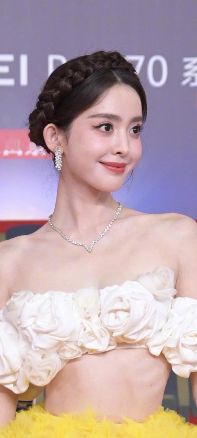 古力娜扎太美了,白色花朵抹胸半身蛋黄长裙,高级感的优雅。娜扎