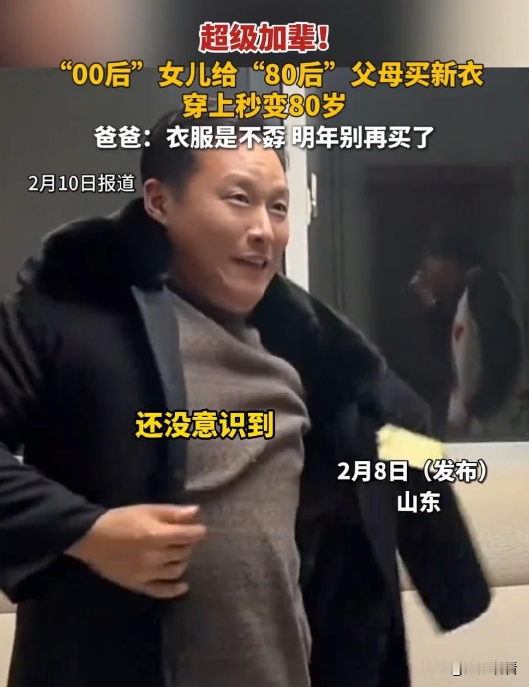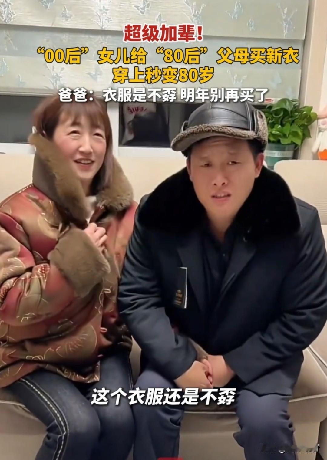 给爸妈买新衣直接超级加辈! 山东00后女儿给80后爸妈精心挑选新年新衣,穿上身直接从80后→80岁,一秒提前养老,真的是孝心满满,但审美彻底跑偏😂 爸爸:衣服是不孬,明年别再买了🙏🏻 妈妈:穿上直接从80后变80岁,主打一个岁月加速⏩ 难道这就是传说中的孝心到位,审美错位吗?主打一个岁月加速 超级加辈! 我觉得这届00后主打一个孝心到位,审美错位😂 有没有同款冤种子女,过年给爸妈买衣服直接买老20岁,举个手让我看看!