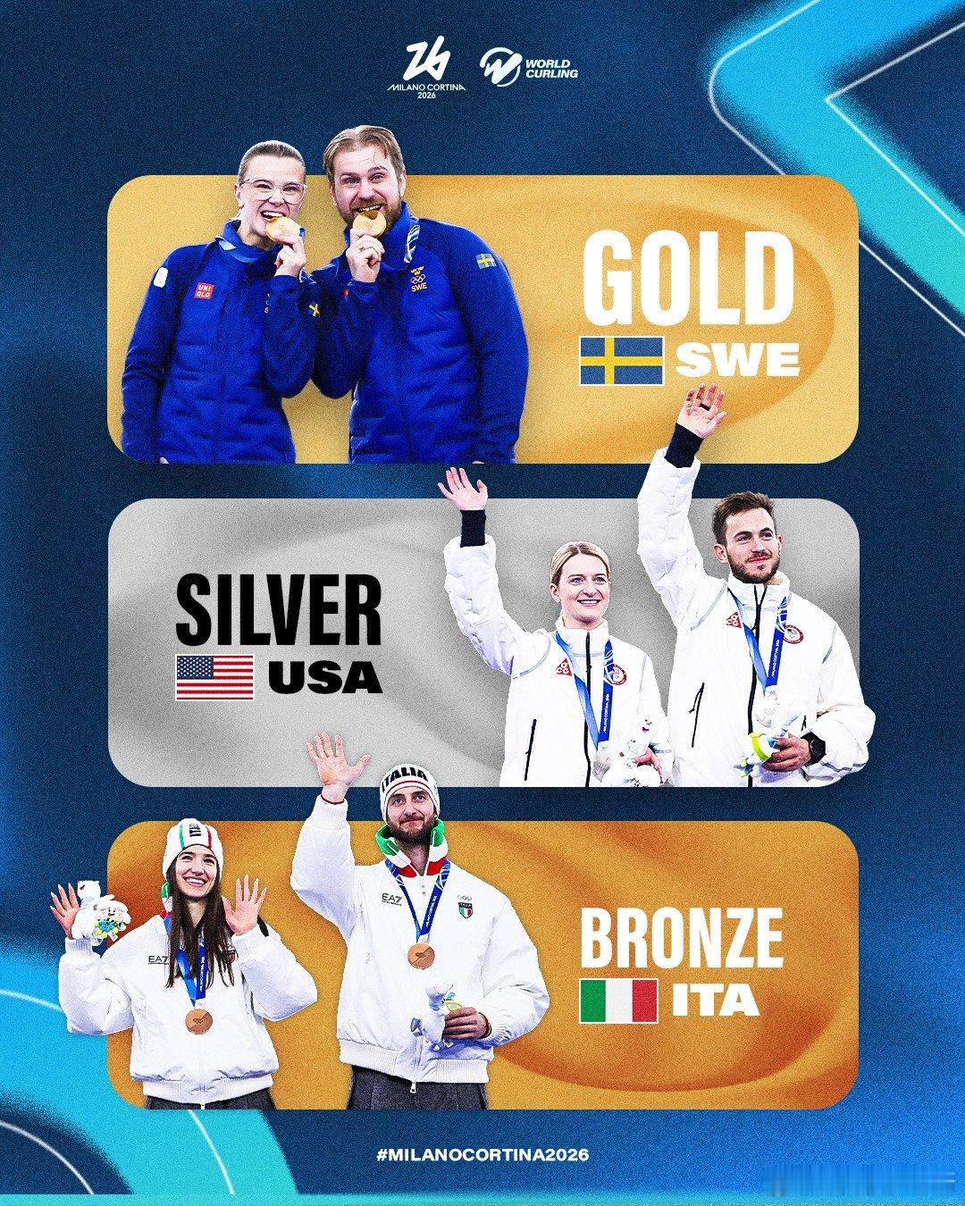 米兰冬奥会冰壶混双项目,瑞典组合弗拉纳兄妹6-5战胜美国队,队史首夺冬奥会冰壶混双冠军,卫冕冠军意大利队5-3击败英国队收获铜牌