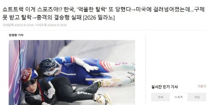 韩媒标题:短道速滑,这还是体育吗!? 韩国又遭“冤枉淘汰”→被美国选手绊倒却…未获复判直接出局→震惊无缘决赛(直播吧)#韩国又一非法拍摄网站曝光#