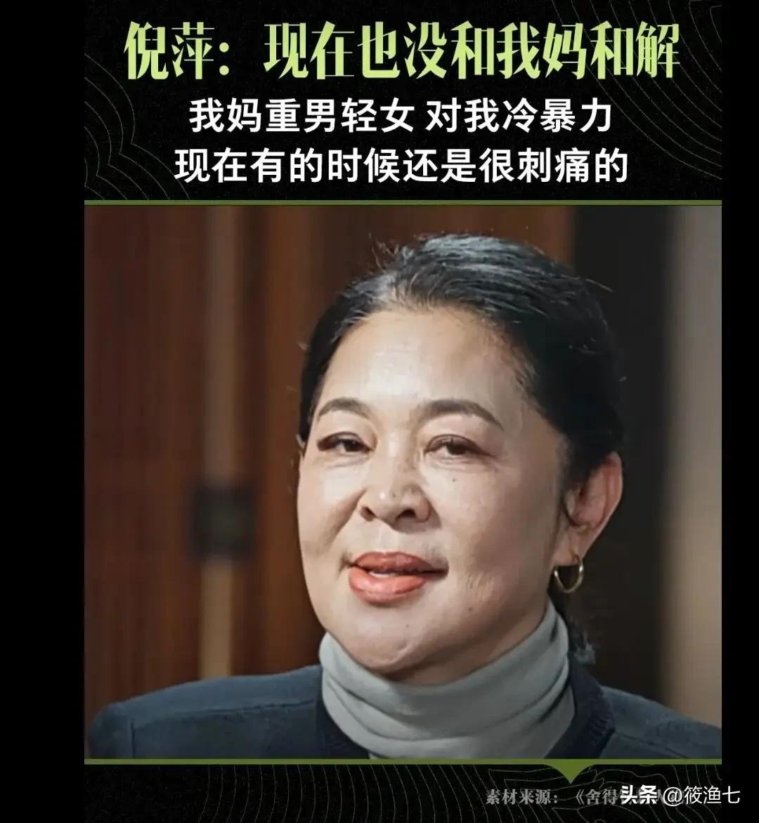 童年母亲对倪萍的深深刺痛,直至今日倪萍都没有办法和母亲和解 66岁的倪萍因6岁的时候父母离异,从小就和哥哥跟着母亲一起生活 因母亲特别的重男轻女思想,所以从小母亲除了没打过她,什么都做过 据倪萍讲述,母亲会给又红又大的苹果给哥哥吃,自己就只能得到那种烂苹果吃 哥哥有整块的肥皂用,倪萍只能用碎的 哥哥有零食蛋糕吃,倪萍却只能换来母亲的一句你吃饭还没吃饱吗 就算倪萍后来成为了央视主持人,受到万人的肯定和赞美,倪萍的母亲也没有夸过她一句 这种令人窒息的关系,受伤的童年,倪萍想起来就只有刺痛 尽管现在倪萍接母亲过来照顾,但是依旧不能和母亲亲近,只是觉得要尽该尽的义务和责任而已