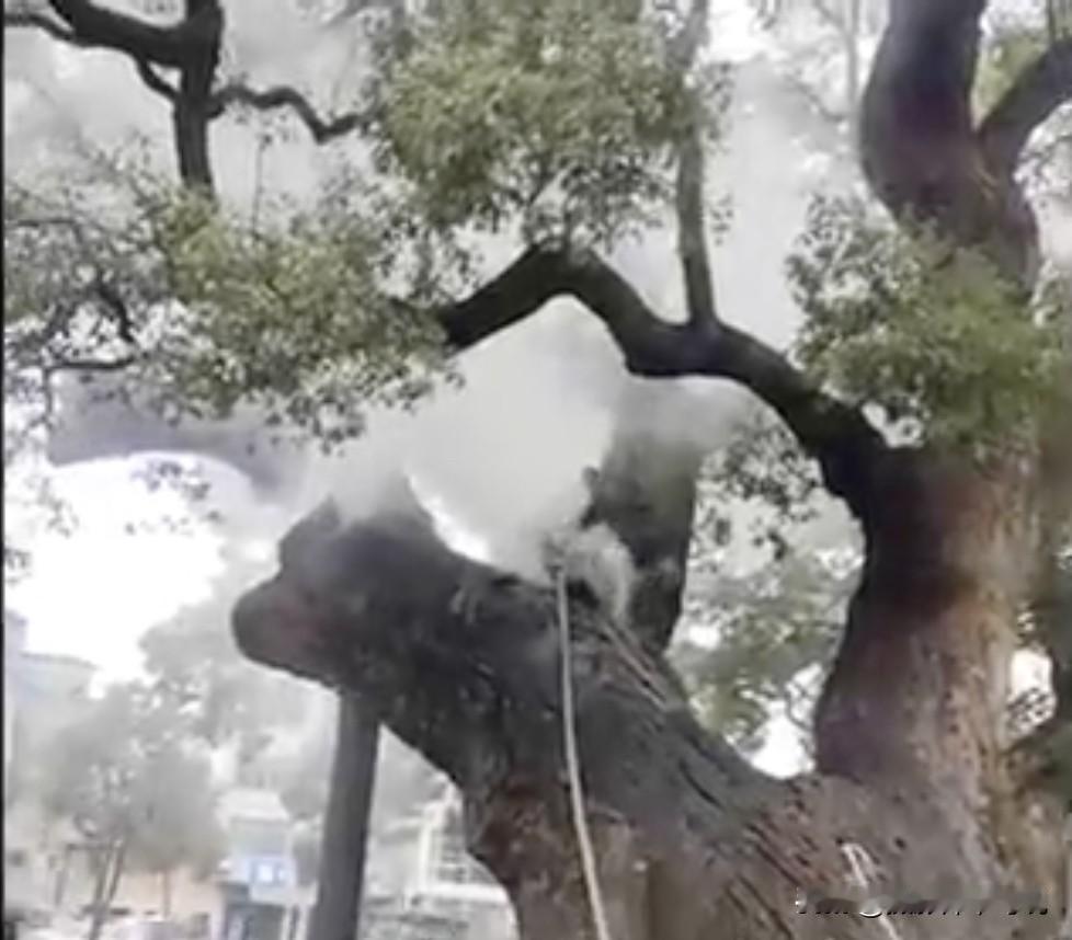 湖南一棵千年古树居然燃烧起来了,看起来十分奇怪,我尝试用走出科学的方式来解释一下。近日,湖南道县祥霖铺镇一棵千年古樟树发生火情,不知怎么的就燃烧了起来,在扑灭明火后依然烟雾缭绕。从现场拍摄的画面来看,这棵千年老树疑似是从内部开始燃烧起来的,这比较符合古树树芯自然的现象。当古树内部(心材)因真菌分解或腐朽产生大量热量,且热量无法及时散发时,内部温度可能达到燃点(约250℃-300℃),从而引发自燃。这种情况通常发生在干燥、通风良好的环境中,且树木内部有空洞。从画面上来看,这棵千年古树比较符合这种情况,老铁们认为呢?