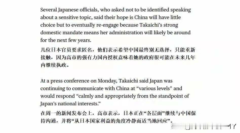 彭博社报道,在高市胜选之后,几位不愿透露的日本官员在接受采访时不无得意地表示,“