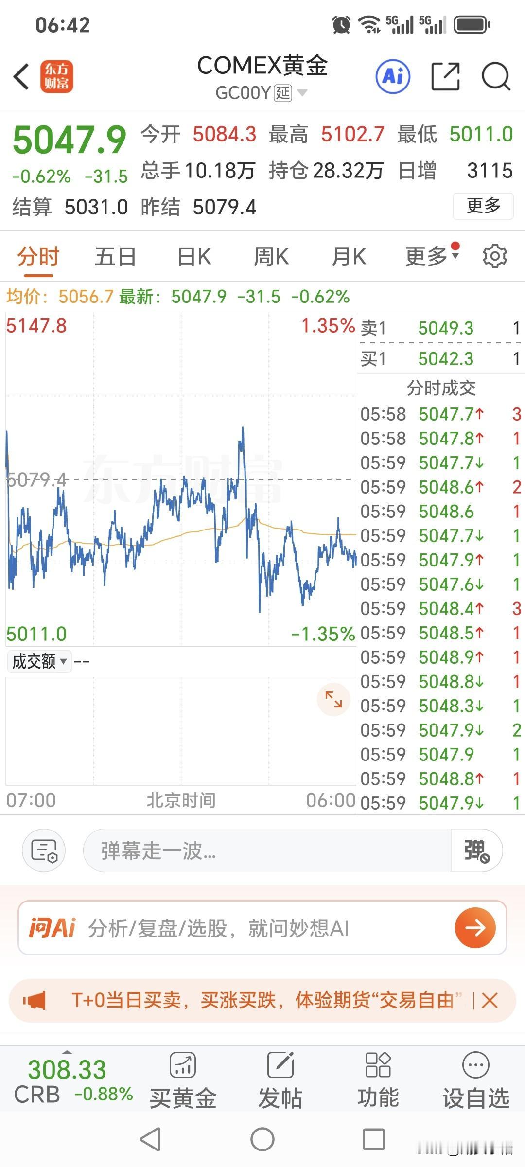 周二国际金价高开低走, 略微回落下跌。 回顾一下,当日运行情况。 国际金价开盘5084.3美元, 盘中最高升至5102.7美元, 最低跌至5011美元, 最终收盘于5047.9美金, 较上一日下跌31.5美金, 跌幅为0.62%。 对于国际金价走势, 期货小褚认为关注 5150—5200美元压力!