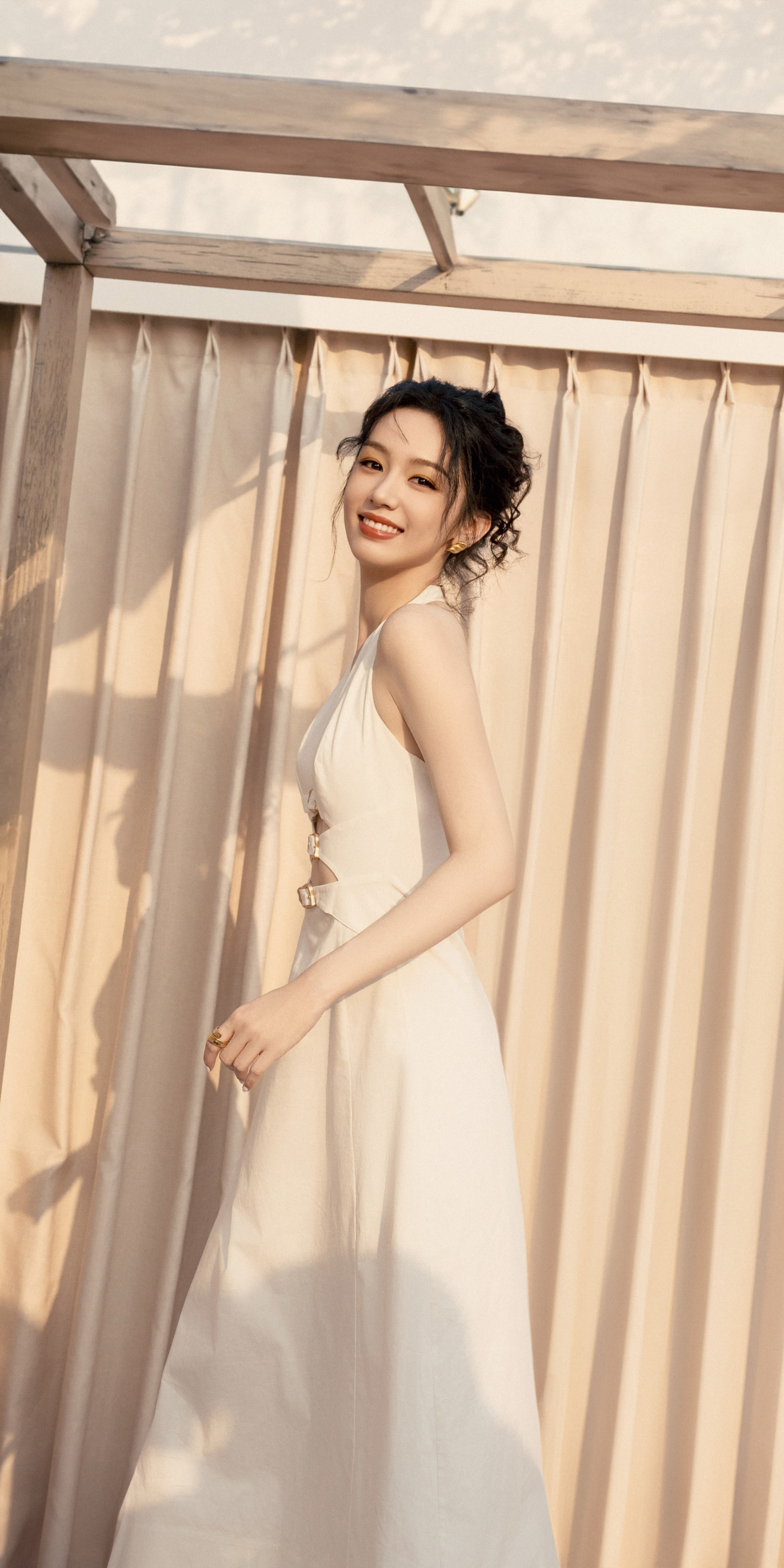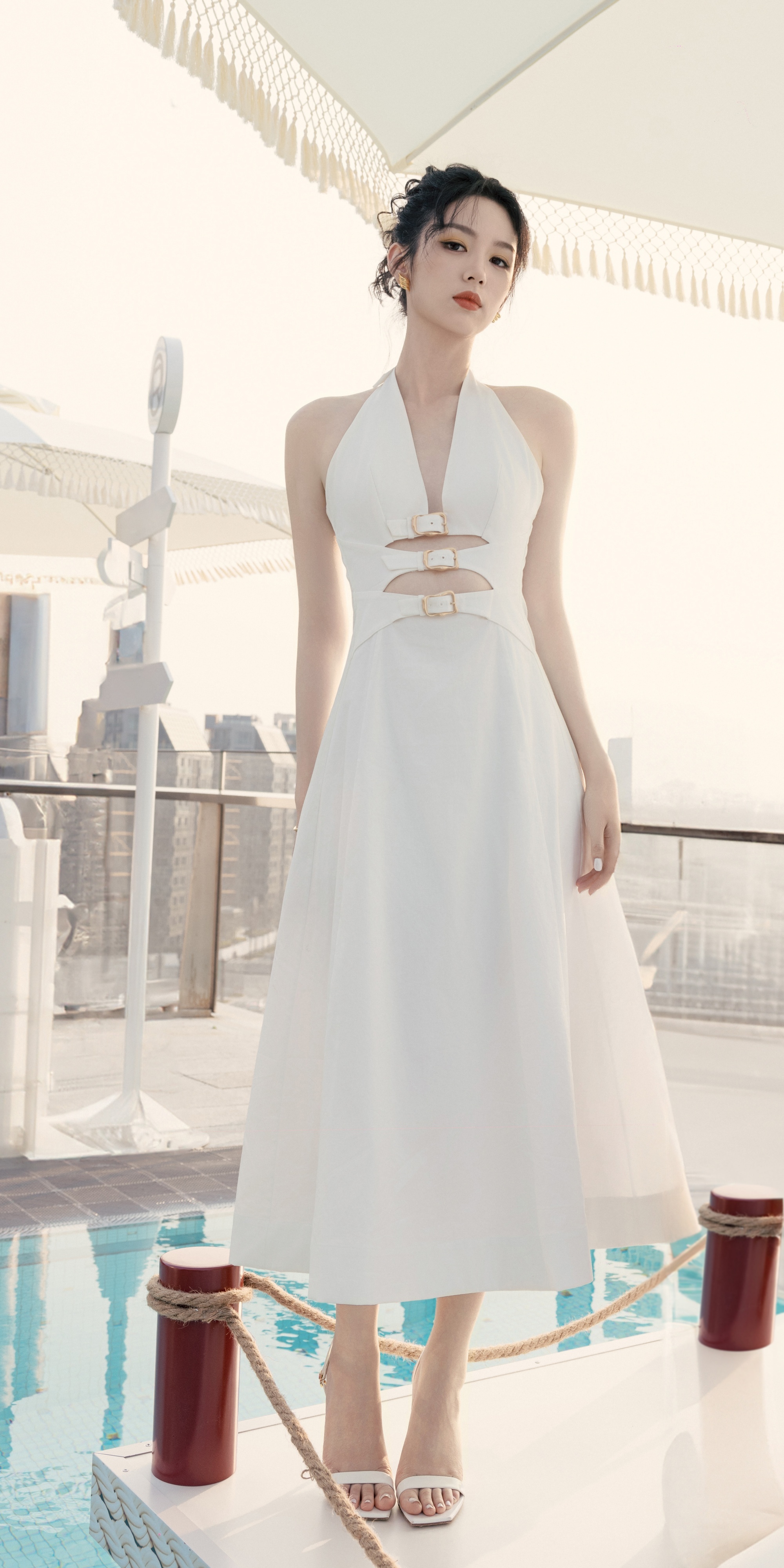周也挂脖白裙,冷感少女。周也