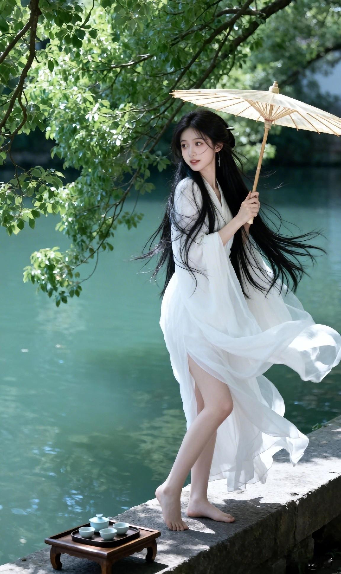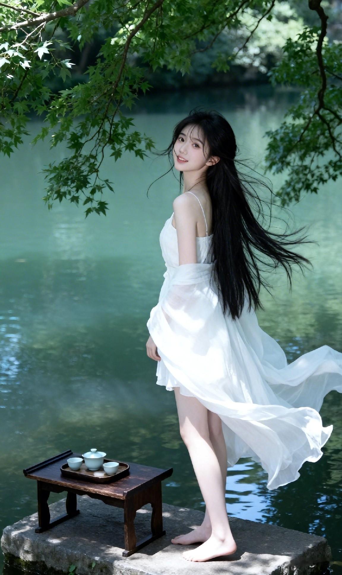 黑发白衣,倚水听风 一盏清茶,半晌闲梦 湖光树影把时光染成莫兰迪色调 你心目中最美的古装美人是谁呢?