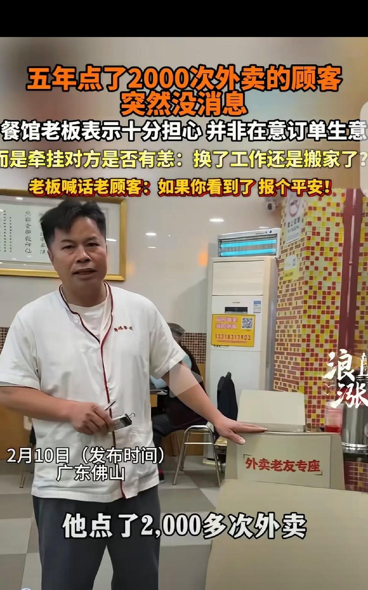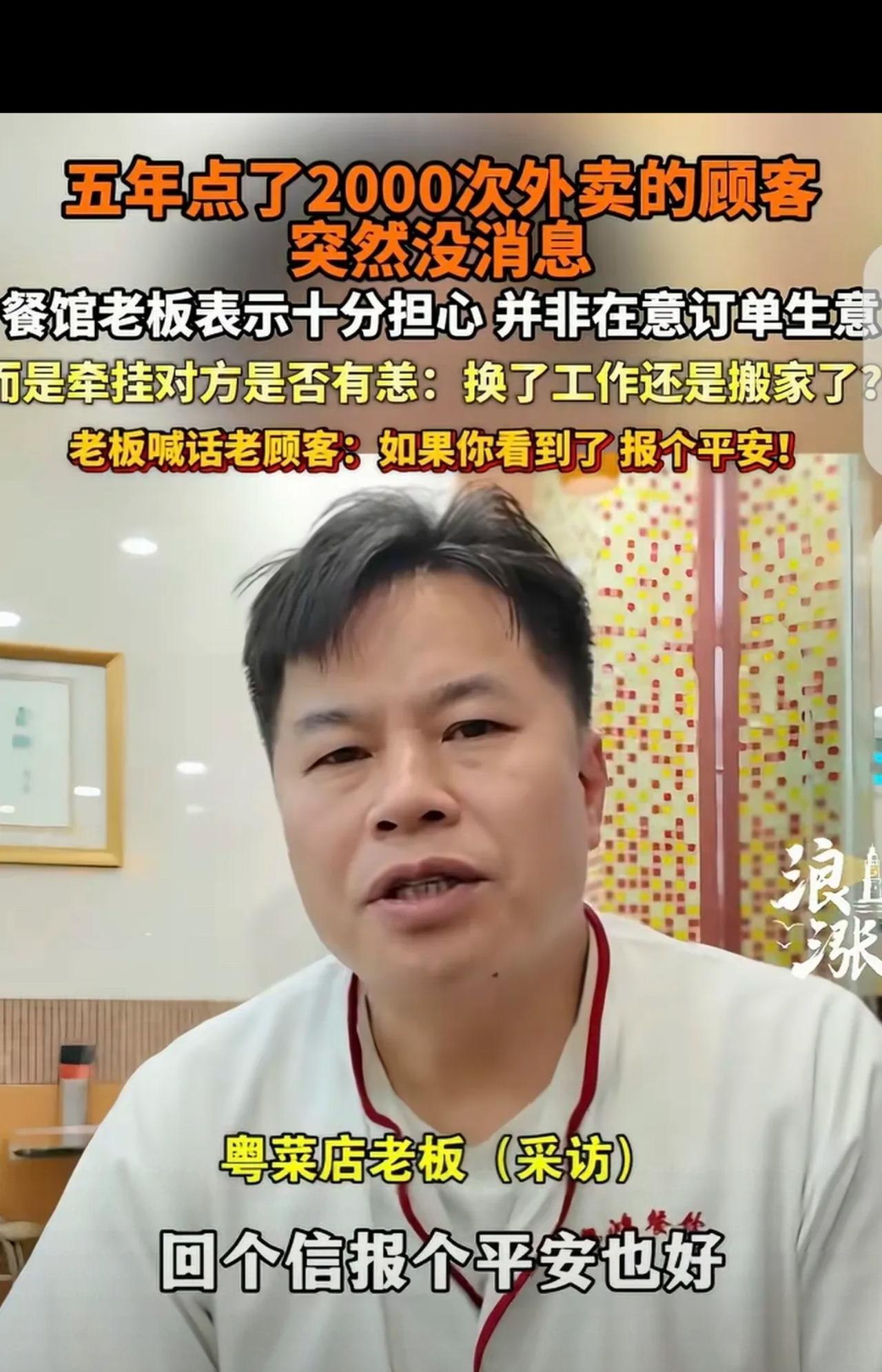 广东佛山,一男子开了家粤菜馆,有个顾客5年点了2000次外卖,突然1年多都没下单,男子很是牵肠挂肚,他不是想挣这个顾客的钱,而是担心对方的安危,不知道是换工作了还是搬家了,男子喊话:如果你看到了,报个平安!网友:可能吃腻了,换了一家,也可能结婚了不用吃外卖了,还可能噶了! 广东佛山的一家老粤菜馆里,老板最近整日心神不宁,全因一位素未谋面的老顾客。 这位顾客堪称店里的“骨灰级铁粉”,整整5年时间,累计下单2000次,平均下来几乎天天都点他家外卖,风雨无阻。 每次必点的都是白切鸡、豉汁排骨、虾饺这几样经典粤菜,口味专一到让老板记了整整五年。 两人从没见过一面,却靠着一顿顿外卖,攒下了无声的默契。老板摸透了他的口味,做菜时总会悄悄多放料、控好火候,就算店里忙到脚不沾地,也会优先处理这份订单,就怕耽误这位老熟客吃饭。 可就在一年多前,这个熟悉的订单突然彻底消失,再也没有亮起过。 起初老板只当是顾客工作忙、出门旅游,没放在心上。可一天天等、一月月盼,整整一年多杳无音信,老板彻底慌了。 他直言:我真不是想挣他的钱,就是打心底里担心他的安危! 是搬家换了城市?换工作没时间点外卖?还是身体出了状况? 各种猜测揪着他的心,最后实在放心不下,老板直接通过媒体隔空喊话:如果你看到了,务必报个平安! 这事一发酵,网友评论区直接炸锅,各种观点吵翻了天: ❤️暖心派网友:这才是最珍贵的人情味!现在满大街都是只认钱的商家,能惦记顾客安危的老板太少见了,5年2000单,早就是老朋友了! 🤔脑洞派网友:大概率是结婚了!有人做饭再也不用啃外卖了;也可能是吃腻了换口味,毕竟再好吃的菜连吃五年也顶不住啊! 😂搞笑派网友:别吓我,不会是直接“噶了”吧(狗头保命),希望是我想多了! 🤨质疑派网友:装什么深情?真有心一个月没下单就该惦记了,拖一年才喊话?食材用油要是没问题,我才信你是真心! 💡理性网友:没必要杠,普通人之间的牵挂哪有那么多算计,2000次的陪伴,换谁都会放心不下。 看完整个事,我真的挺感慨的。 在这个快节奏、薄情的时代,连吃饭都成了速食消费,能有一个人五年如一地选择同一家小店,能有一个老板,抛开生意利润,单纯为一个陌生顾客的安危牵肠挂肚,这份烟火气里的温柔,太难得。 有人说老板炒作,有人说多管闲事,但我始终觉得,这份没有利益纠葛的担心,就是最朴素的善意。 从法律角度来说,老板的做法既没泄露隐私,也符合公序良俗,不过是陌生人之间的一场温柔牵挂。 一顿家常菜,五年老交情,人间最暖的从来不是山珍海味,而是藏在三餐里的真心与惦记。 你觉得这位顾客突然消失,最可能是什么原因?你支持老板的暖心喊话吗?评论区聊聊~