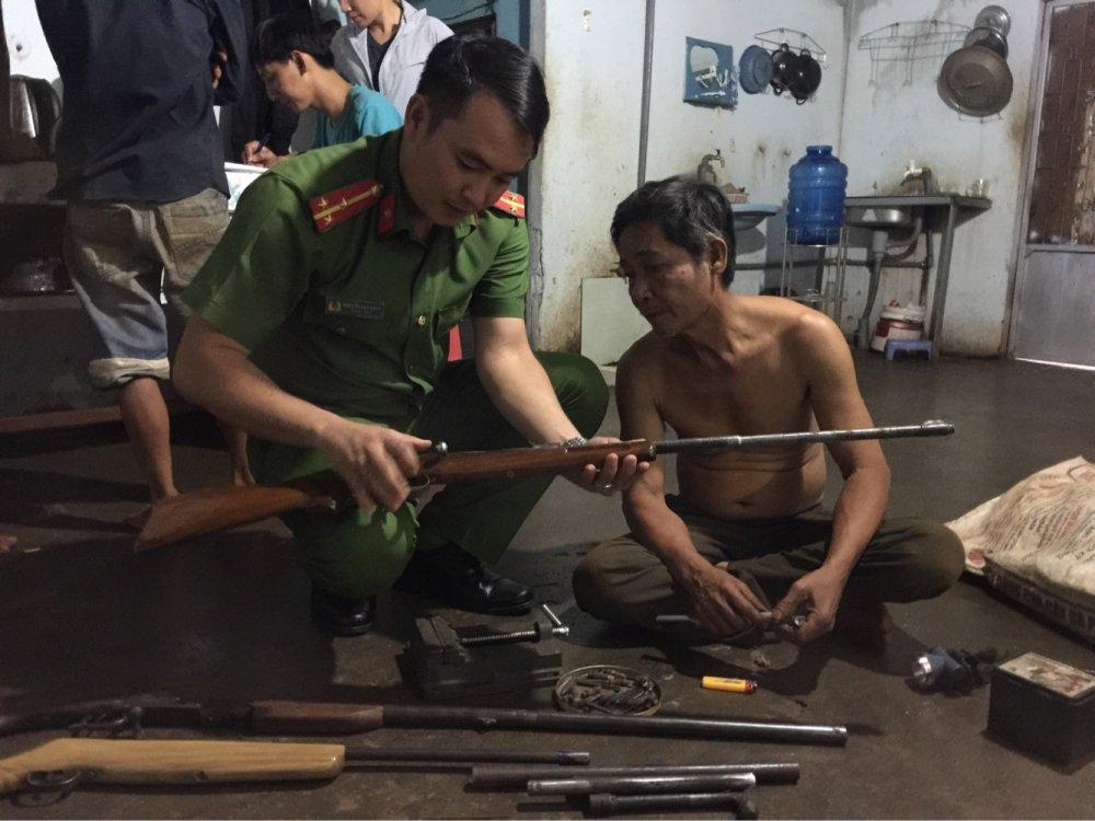 越南多乐省警方刚刚在邦美蜀市 Cu Ebuar 公社一人因非法储存枪支、弹药和爆炸物被捕 多乐省警察局接到消息后进行监控检查,发现邦美蜀市古埃布尔公社二村B街23号房屋内,夏方雄先生家中藏有枪支7支、炸药多处、子弹数百枚。 洪先生承认,他专门为多乐省内外的客户修理坏枪。至于子弹,他买来的目的是为了得到炸药来制造新的子弹。