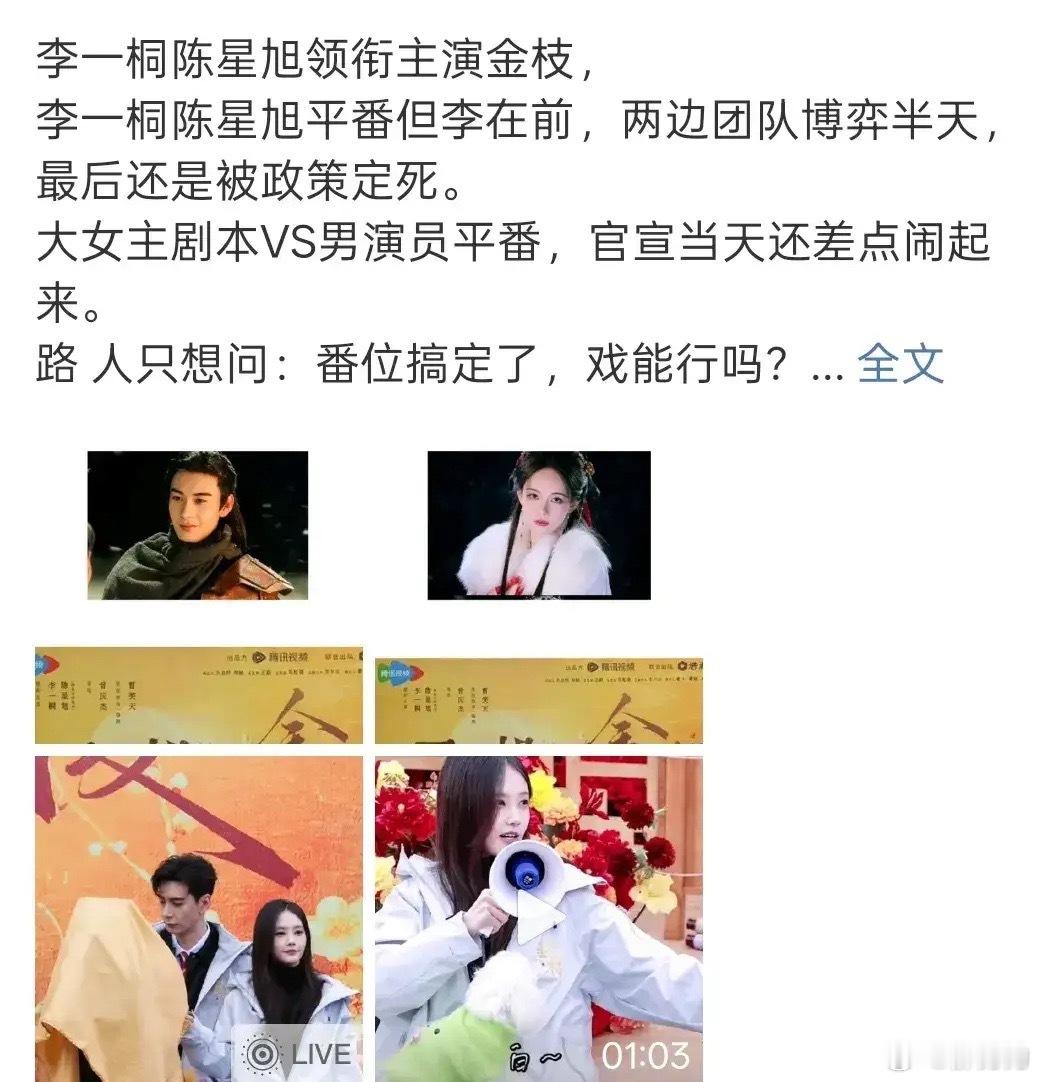 本来就没什么爆的潜质 粉丝还开始撕上番位了没拍呢就窝里反也挺搞笑到处都“期待 全平台第一顺位一番女主李一桐 ”蛮尬的