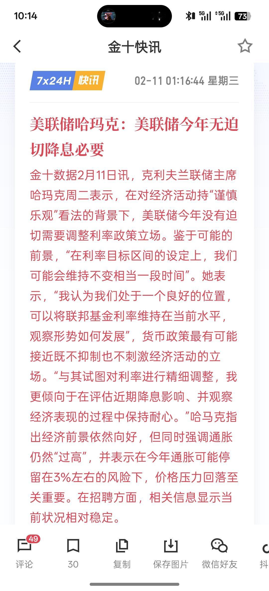 美联储哈玛克:美联储今年无迫切降息必要!关键是特朗普会不会同意美联储不降息的作风,今年美联储要更换新的美联储主席,而且特朗普要推动美国经济大幅度的增长,增长达到15%的增长率,就目前美国经济增长率是不可能完成的任务的,美国对全球多国增加关税,美国经济增长率不太可能有如此大幅度的增长,只有美联储失去独立性配合特朗普的政策策略,美联储继续降息释放资金流动性,美国经济才能大幅度的增长,坏处就是美元价值下跌,好处就是美国经济增长!