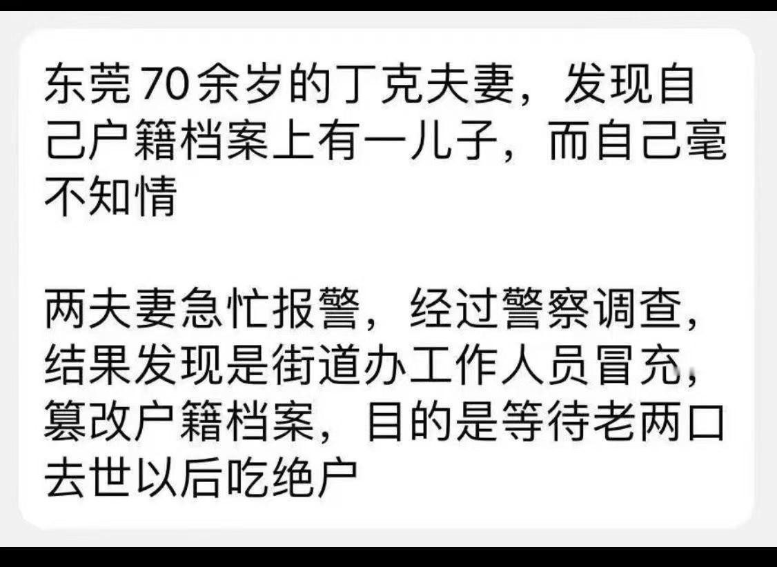 丁克夫妇户口档案被篡改, 多了一个儿子,被吃绝户。 这是真的吗?