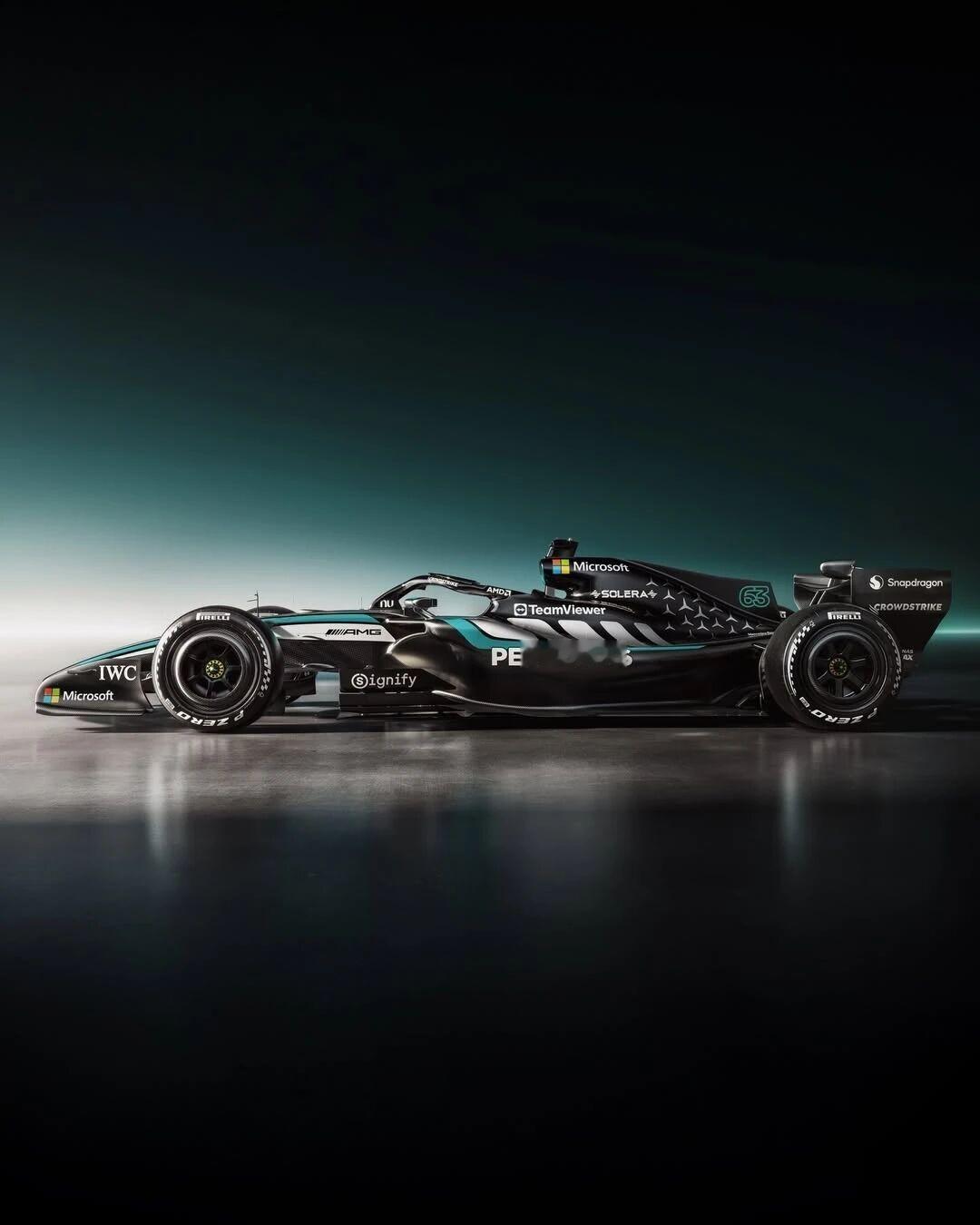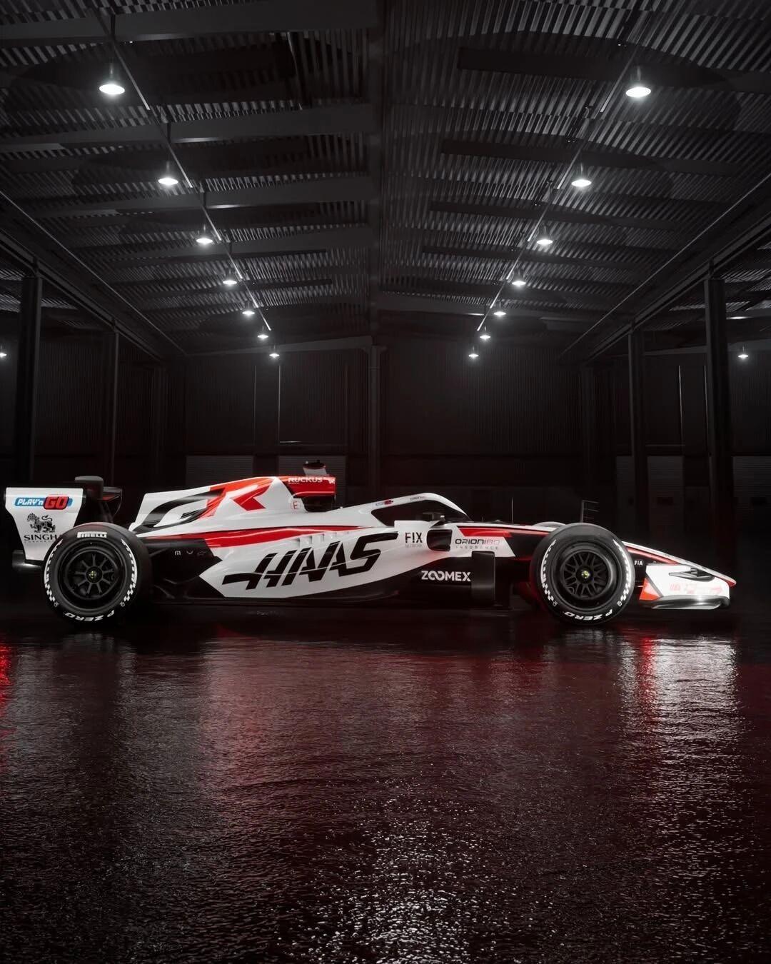 凯迪拉克F1赛车涂装发布,两边侧箱用了不同的颜色组合,一白一黑,还是很有辨识
