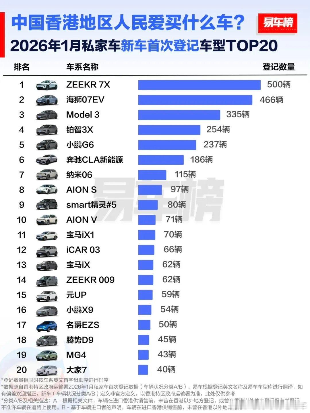 香港人民都爱买什么车?1月中国香港新车销量排行榜出炉