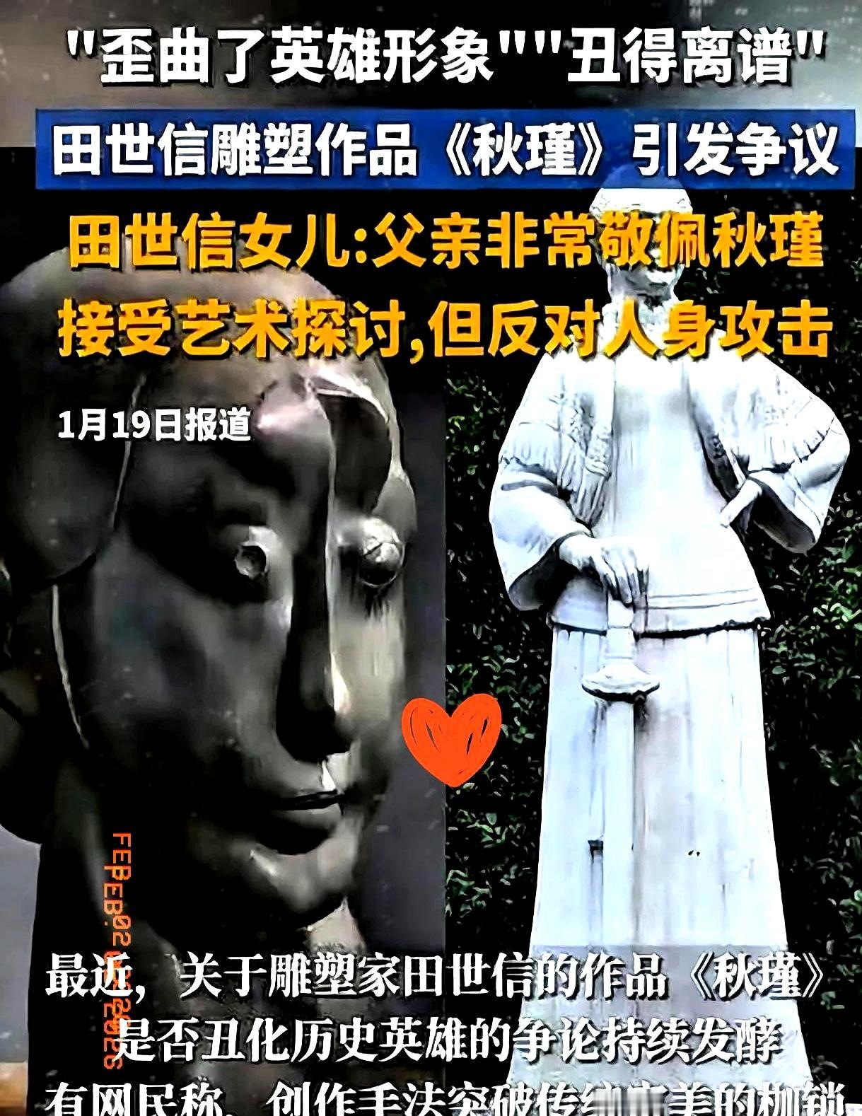 田世信因一尊被指“丑化”秋瑾的雕像,被后人告上法庭,事件迅速发酵。 此前他在苏州放过一件被拆的《老子》,同样引发争议。 田家称作品属写意,女儿把公众不理解归结为审美差异,但网友用模仿和创作反击,田家则以律师函回应,矛盾一触即发。 后来秋瑾后人带着手札求见未果,只好诉诸法院,法院已立案。 这个事件之所以容易上热搜,是因为涉及英雄形象、公众情感与艺术自由三者的冲突,再加上社交媒体上的模仿与反讽放大了影响。 法律上,《英雄烈士保护法》对英雄名誉有明确保护,但艺术表达也有探索空间。 对创作者来说,尊重历史人物的公众认知和底线,是把艺术和社会责任兼顾好的前提。