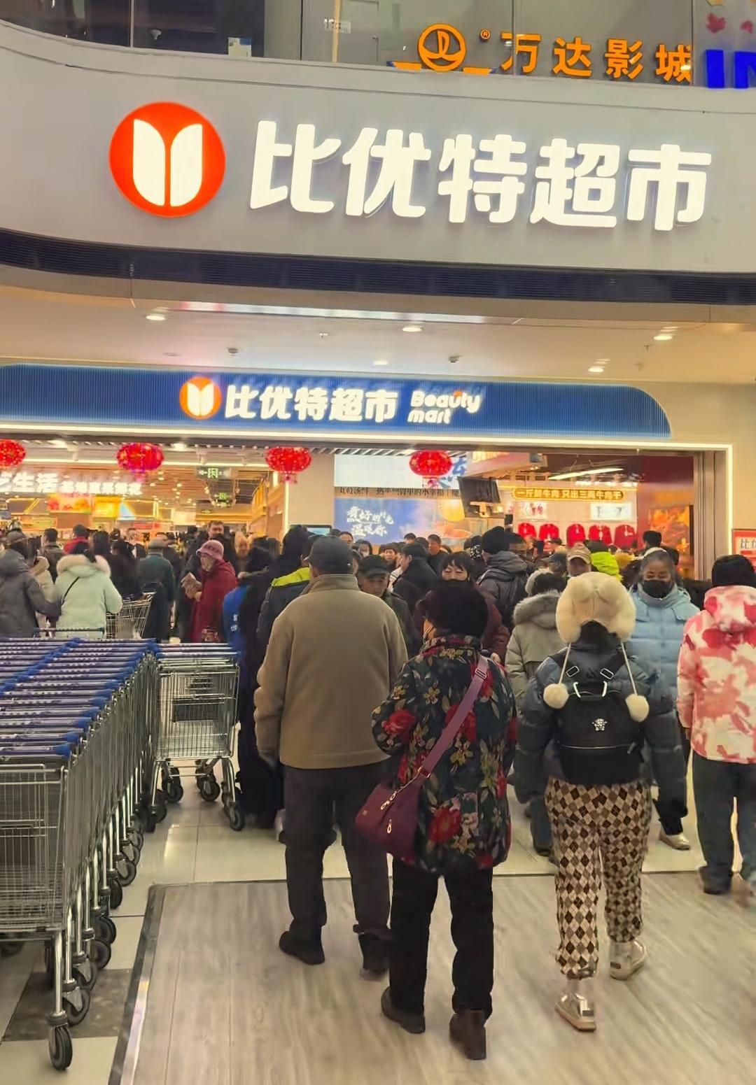 最近本溪鑫城商厦与万达广场的比优特超市开业带动了山城百姓采购年货的热情,即便是开业第6天依然是人山人海,购物车真的太多了。 来到万达广场的比优特超市我发现商品货类齐全,网红美食比较多,瑞士卷、寿司、炸锅包肉、卷饼、榴莲千层蛋糕、蒸包子、烤肉串这些特色美食是之前本溪的超市未曾拥有的。袋装的豆芽、干豆腐、豆干也是一大特色,而且比优特超市还有自己自营品牌,装修风格现代化,因此本溪百姓来到比优特超市会感觉有种大城市超市的感觉。 唯一的不足之处就是开业略显有些匆忙,牛奶的种类相对较少,走了半天没有看到有卖羊奶的,希望今后能够在这方面有所提高。
