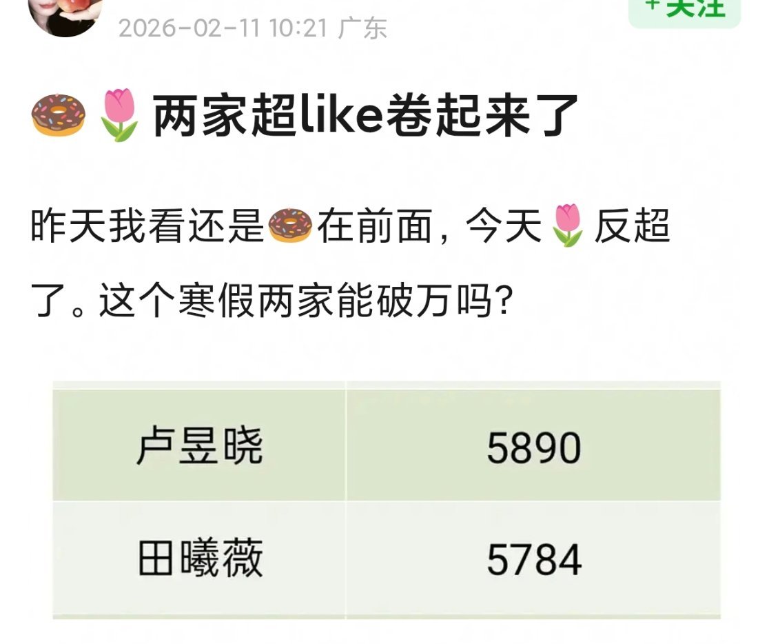 tg.田曦薇、卢昱晓超like卷起来了95下一朵大流量🌸目前看来确实是🍩