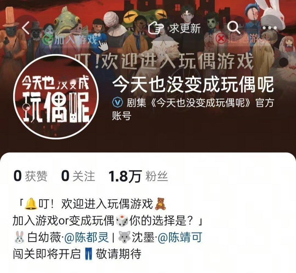 《今天也没变成玩偶呢》官抖已经官宣了陈都灵、陈靖可