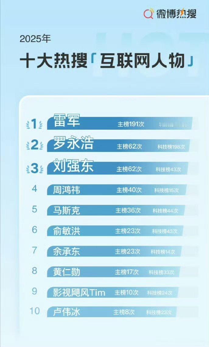 雷军年度十大热搜互联网人物榜首根本不出意外,雷总顶流!