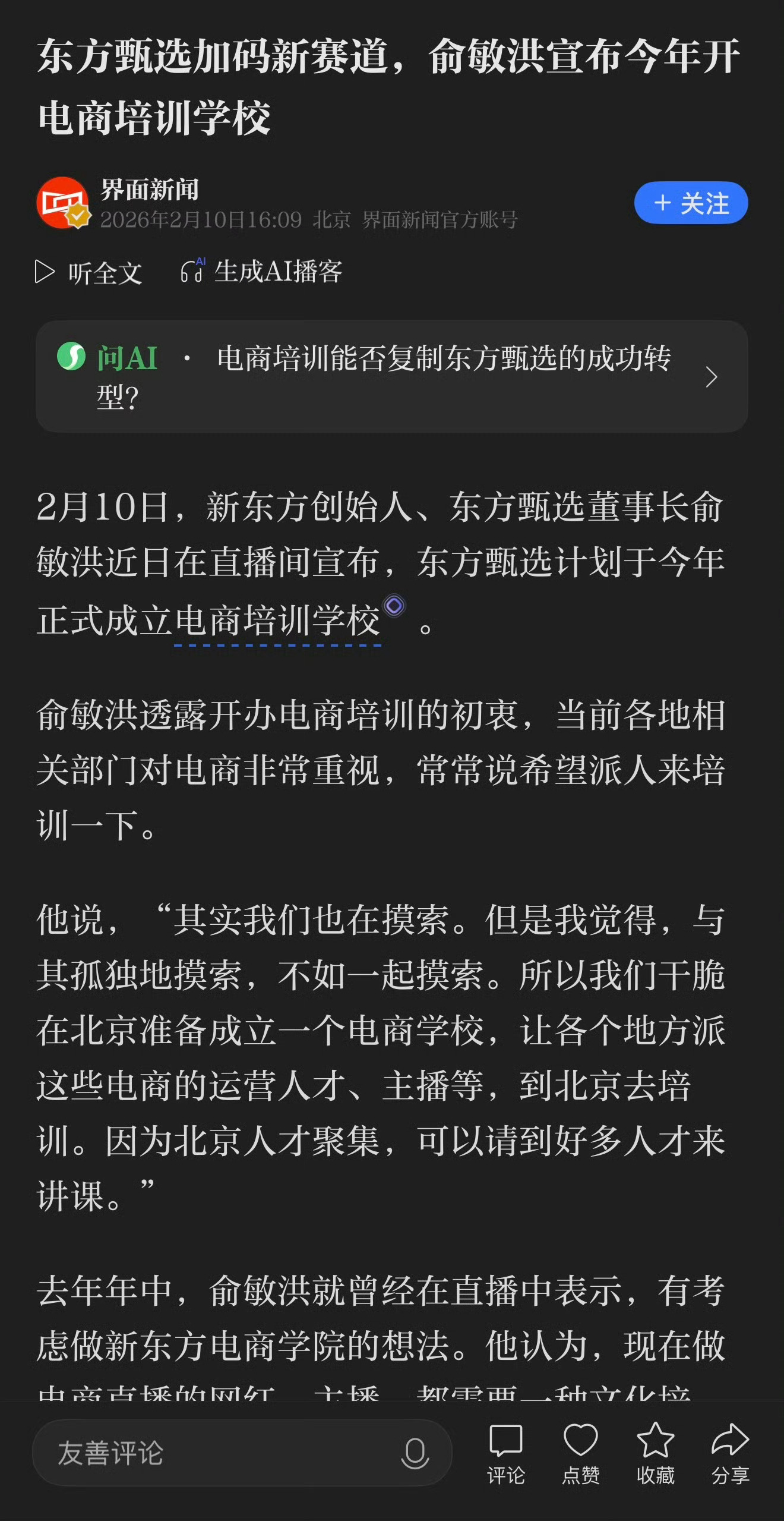 咱就是说,东方甄选火的是董宇辉,他走后东方甄选直播间也是不温不火,这就要开店商培训学校,这是要请董宇辉回来教带货吗俞敏洪电商俞敏洪要开电商培训学校