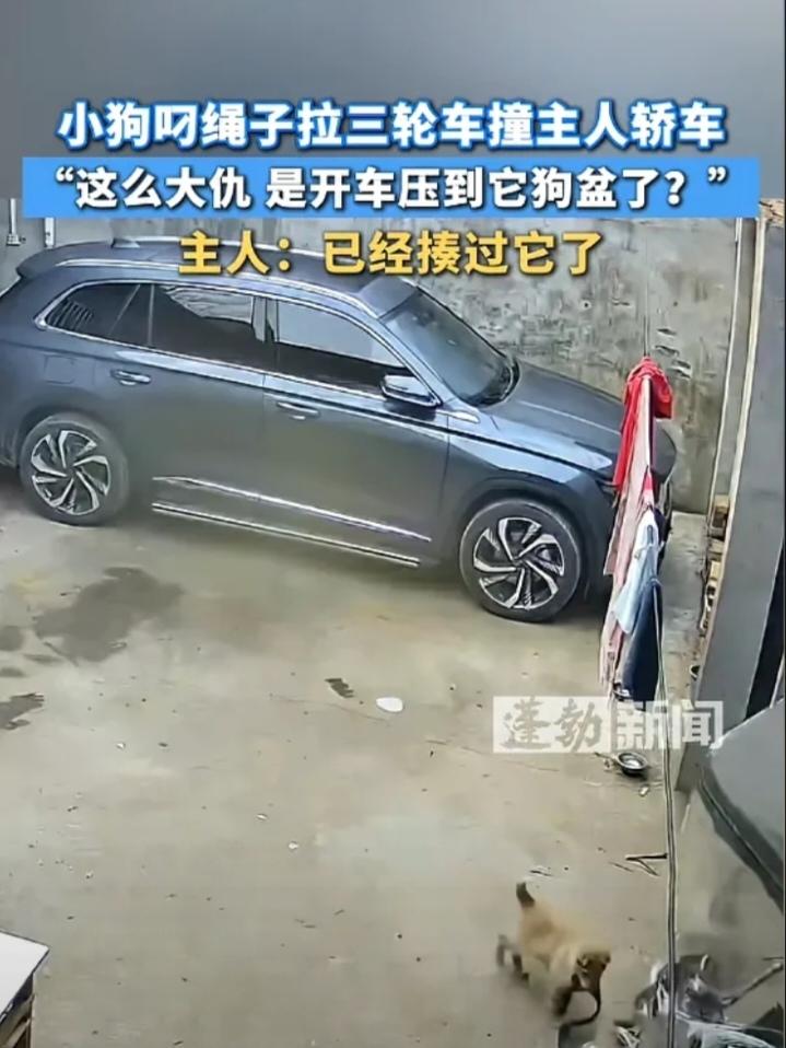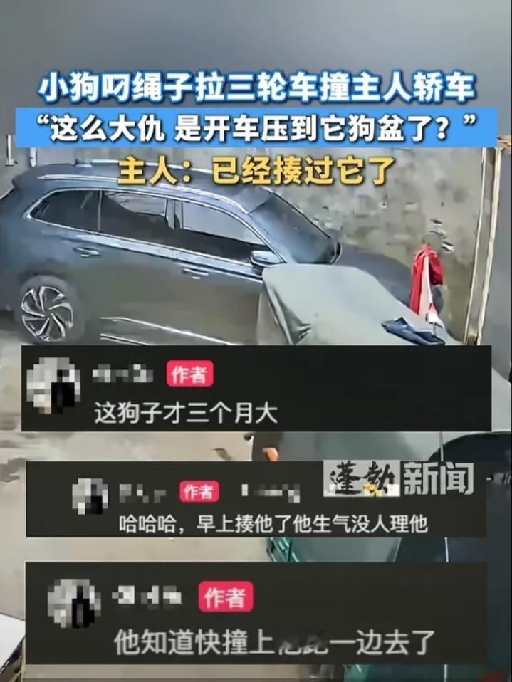 笑不活了!2月5日,河南新乡,一男子因为小狗调皮,早上的时候揍了它一顿,小狗立马生气,见没人理它,便想报仇,于是趁男子不在时,小狗叼住三轮车绳子往角落的汽车撞去,要不是监控拍了下来,男子都不敢相信!网友:又要挨顿揍了! 这事儿放到网上直接炸了锅,不少网友看完监控都笑喷了,本来还心疼小狗早上挨了揍,觉得主人下手有点重,结果看完这波精准报复的操作,瞬间改变想法,大家都觉得这狗调皮又记仇,闯完祸肯定还得再挨一顿揍。小狗明明力气不大,还懂得借三轮车当“武器”,全程走位还特别灵活,眼看三轮车要撞到自己立马躲开,这智商全用在报复主人上了。 其实宠物调皮很正常,教训一下没问题,但像这样记仇的小狗,教训完还是得安抚两句,不然真能做出让人意想不到的事。男子看到监控也是又气又笑,压根没料到自家小狗心眼这么小,撞车这事没造成大损失已经算万幸,真要是把车撞坏了,小狗的下场肯定更惨。 各位读者你们怎么看?欢迎在评论区讨论。