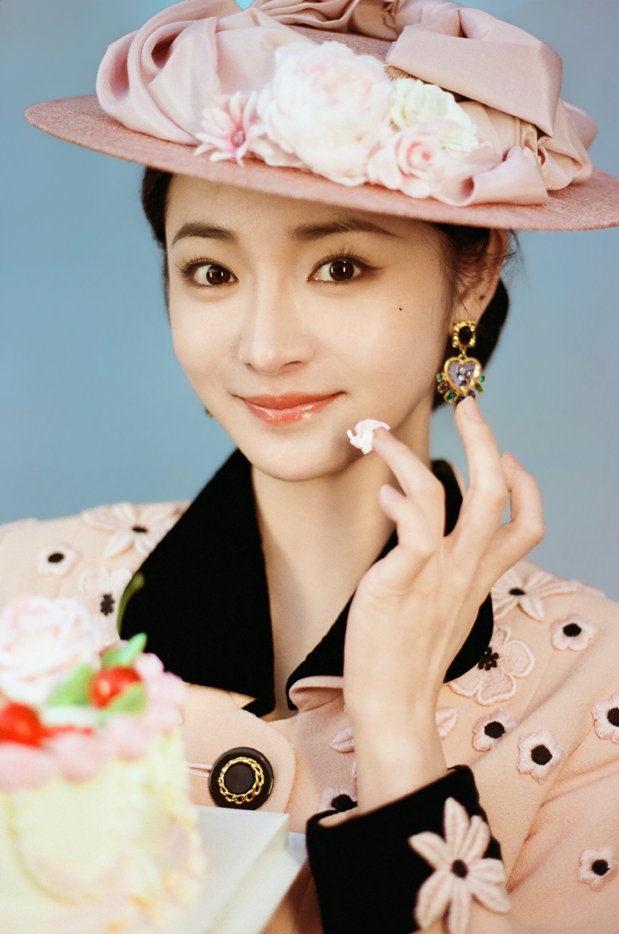 周洁琼复古美人,这周洁样子,咬一口27岁的生日蛋糕。周洁琼