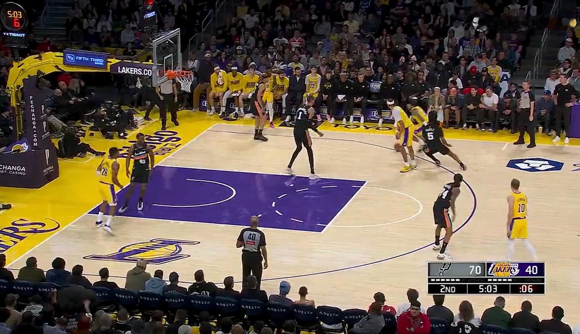 湖人新星克内克特真是不负众望!尽管今天湖人在主场以108:136惨败于马刺,但是