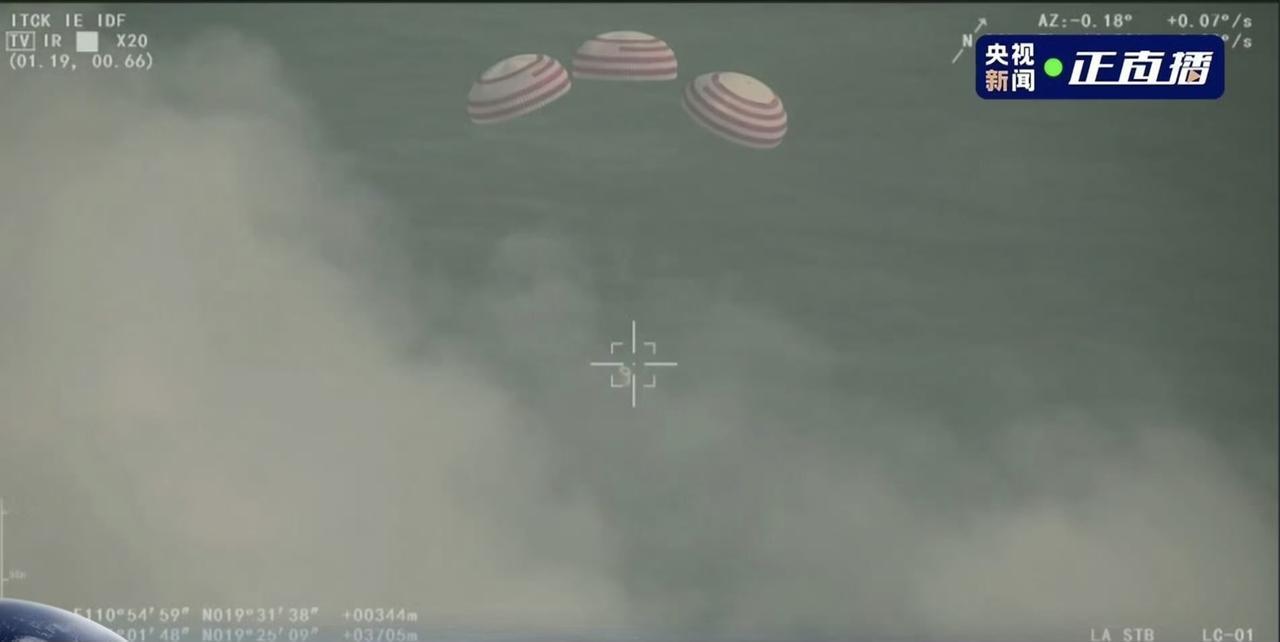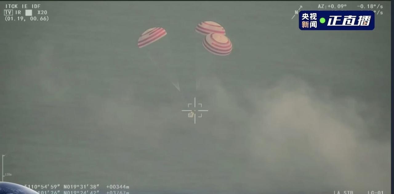 梦舟飞船返回溅落海上画面 ,三伞全开,果然够重。