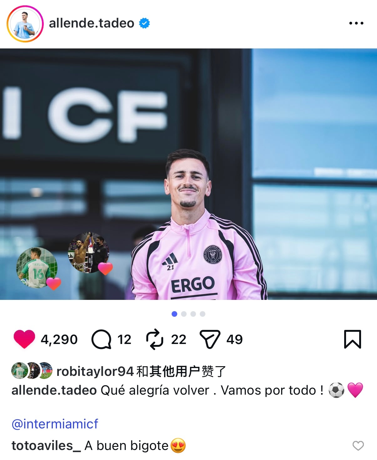 泰勒、亚辛、巴尔塔萨尔、奥班多、塞戈维亚、阿维莱斯点赞👍迈阿密国际