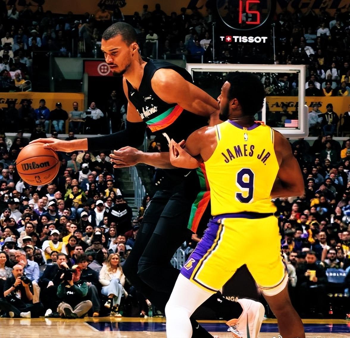 布朗尼防守文班亚马... 文班亚马:身高2米26,臂展2米5 布朗尼:身高1米87,臂展2米01 湖人是真没招了,半场海斯3犯,克莱伯4犯,拉拉维亚5犯,大部分都是吃在文班亚马这块儿了,防守是根本干扰不到,要么犯规送罚球,要么看着文班亚马扣篮。 于是为了稍微保护一下几个大个子,湖人把小球员放到文班亚马身前了,除了布朗尼,还有肯纳德、巴夫金、尼克史密斯都在轮流防守文班亚马,也展示出了跳起来打你脑瓜顶的巨大差距。 而文班亚马,站那儿比所有人高一头,还用他那超长的胳膊在上空呼啦,湖人球员只能望球兴叹。