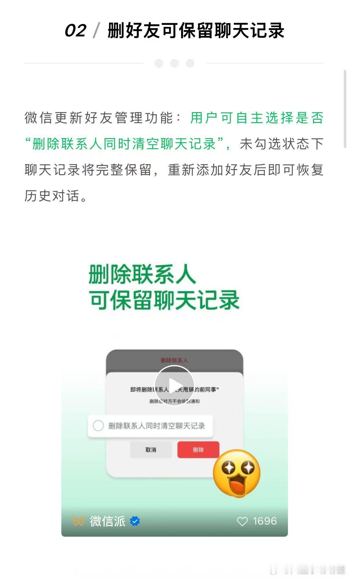 微信9大更新 9个里面最实用的,应该是删好友能保留聊天记录了吧,什么时候才能等到