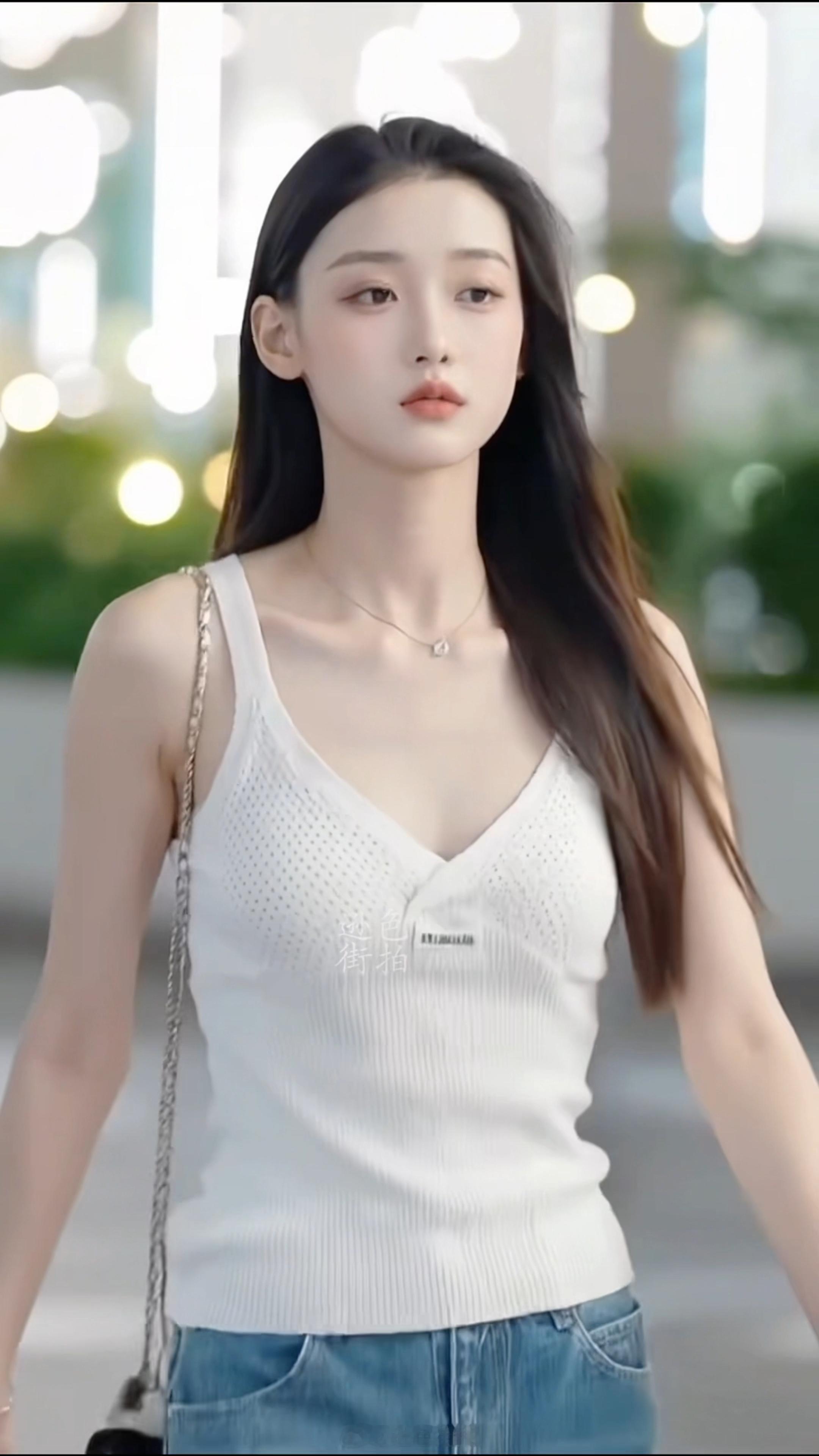 优雅气质少女,走在绿意盎然的小巷中。佳丽美媚清纯女郎绝美时尚影亮丽甜美青