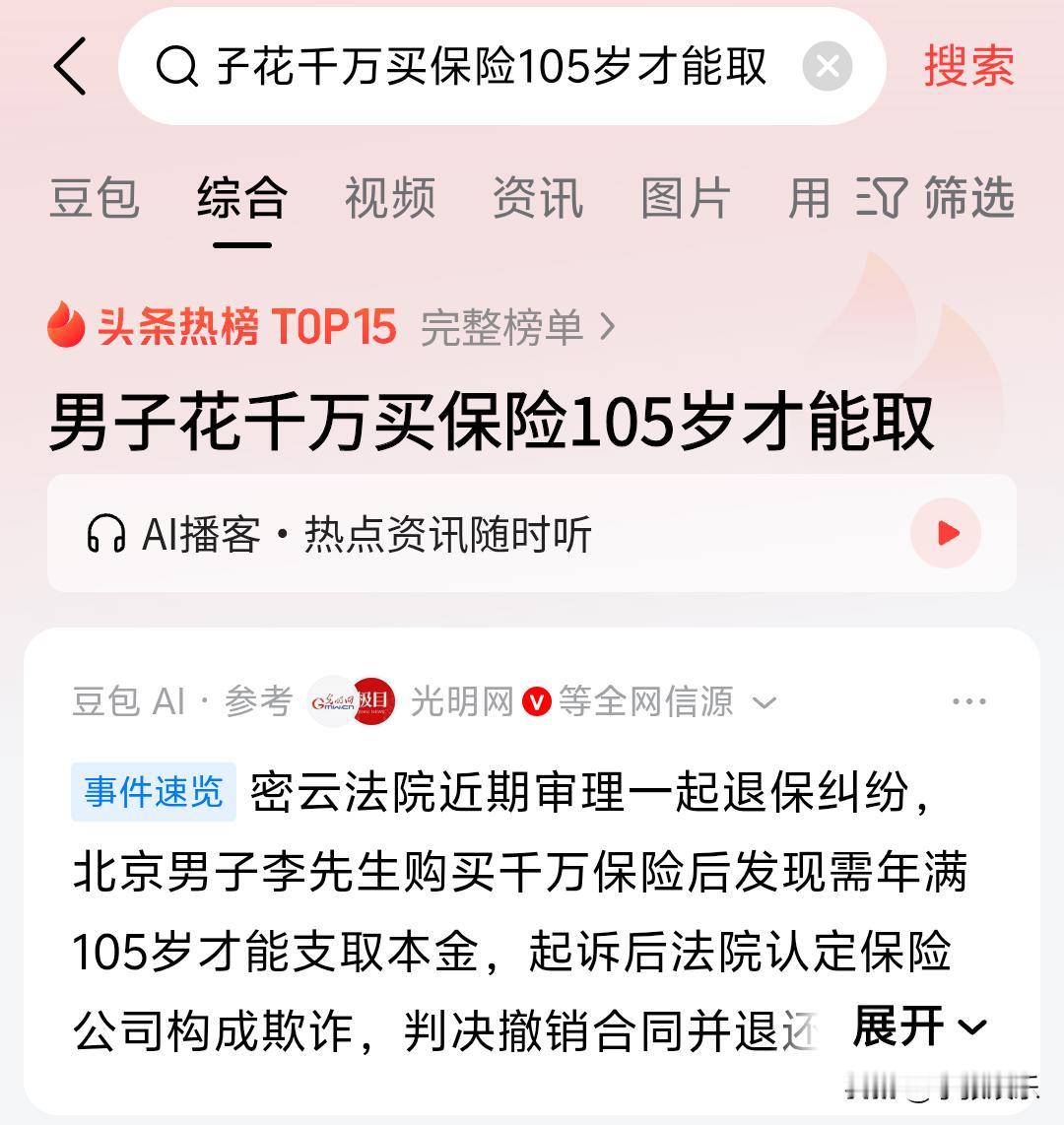 我不明白!千万保险要等105岁取,这是保障还是“画饼”? 你们以为花千万买保险,是给自己留条后路,结果合同一翻,要等到105岁才能取本金? 当年听销售吹得天花乱坠,说“锁定终身收益,越老越吃香”,砸了半生积蓄进去,转头才发现领取年龄堪比“活成老神仙”的门槛。 这几年他天天算着日子,看着保单上的“105岁”欲哭无泪,想退保要亏大半,想持有又怕熬不到那一天,这不就是把钱“锁死”在未来了吗? 他找销售理论,却说“合同写得明明白白,只能认栽。 但我偏不信这个邪!咱们买保险图的是安心,不是赌自己能活过百岁啊!哪怕条款写得再花哨,不能贴合普通人的实际需求,终究是镜花水月。 无论怎么讲,消费者的知情权不能被套路,咱们擦亮眼睛、看清条款,优势在我! 与其迷信“百岁保单”,不如选实实在在能用到的保障,这才是保险该有的样子呀!