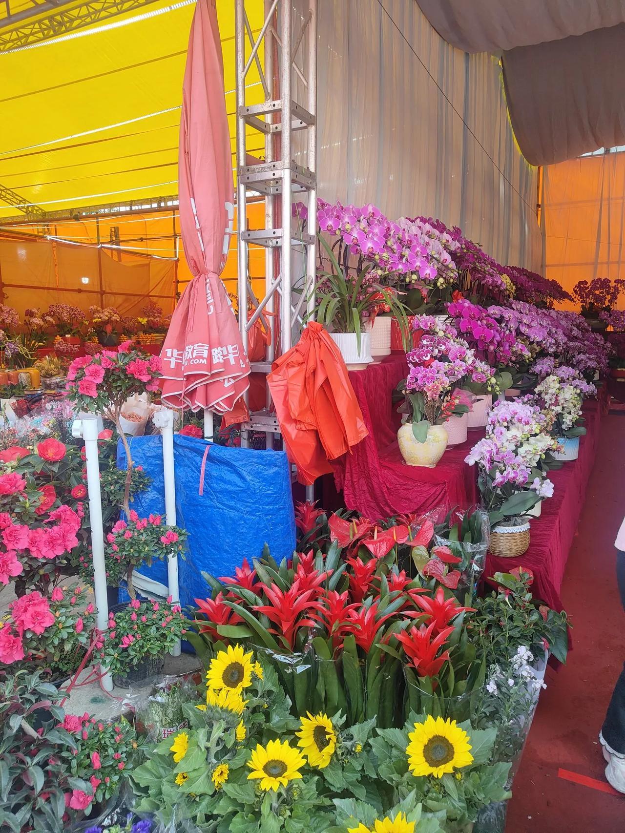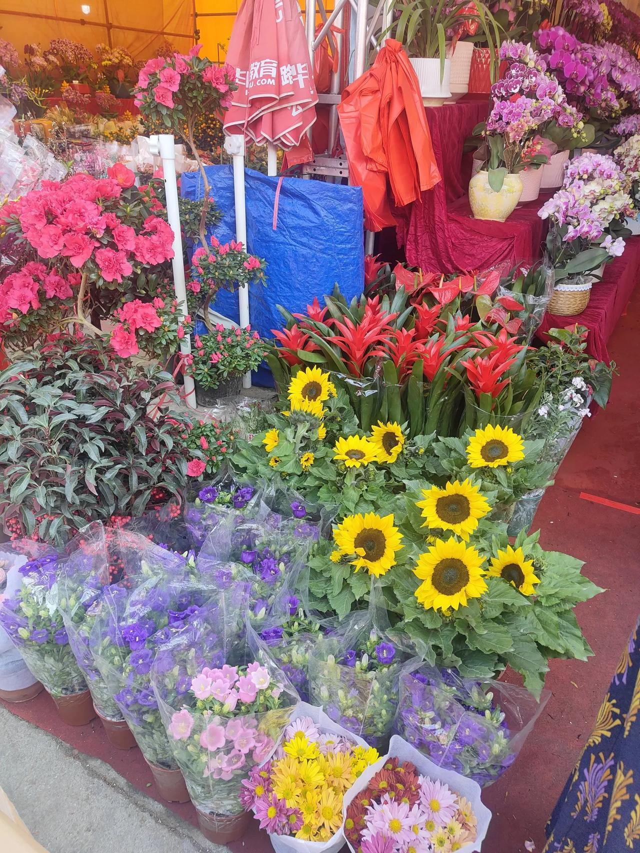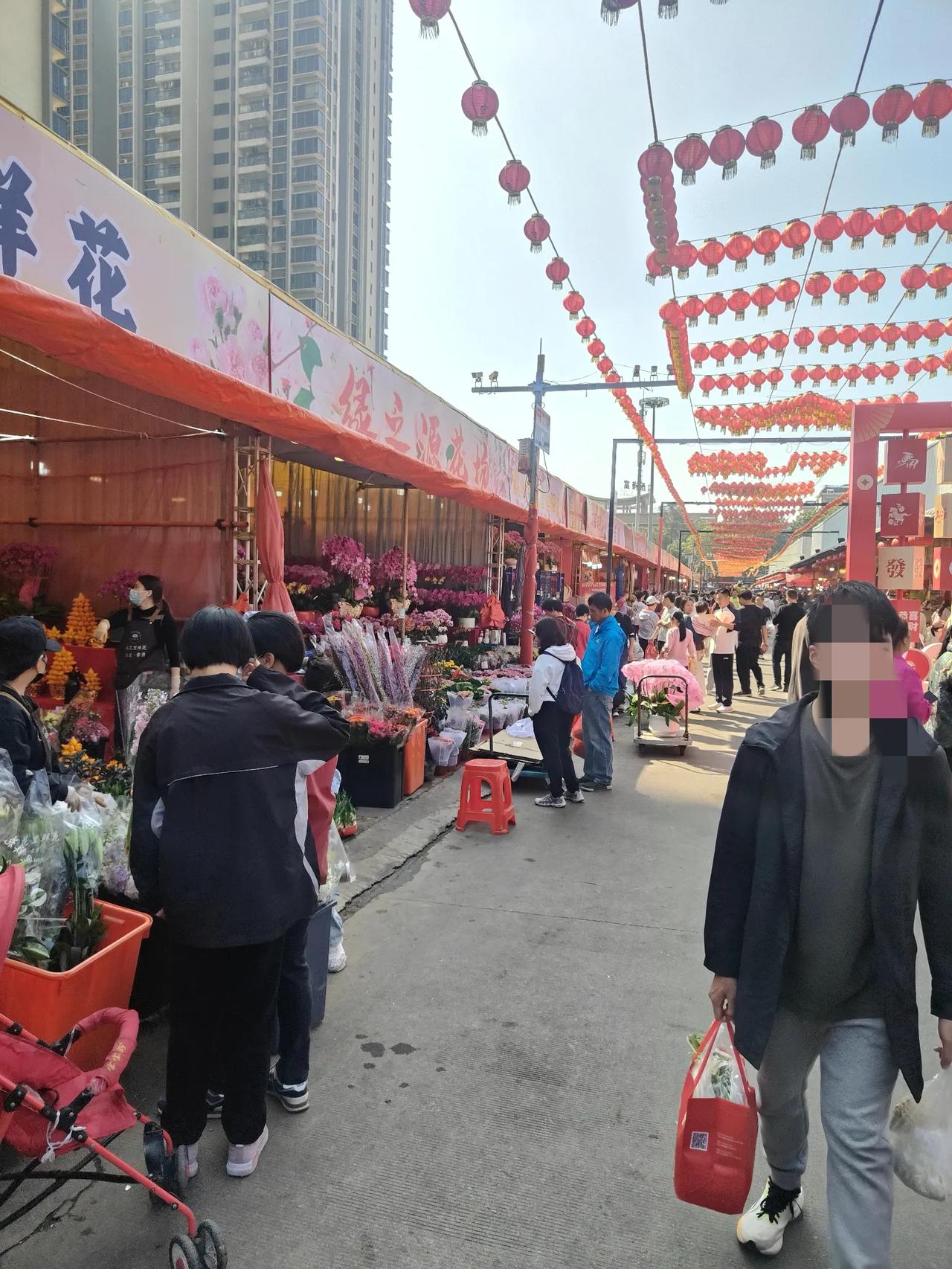 在广东过年必逛花市,每个城市都有很多花展,家家户户都要在屋里摆几盆应景的花卉。 花在粤语里面跟“发”谐音,所以摆花也是讨个发财的好彩头。祝福新的一年财源广进。 这是广东中山比较大的花市,每年过年都有,位于中山市沙岗墟社区。现在还没到人最多的时候。已经是人山人海了。