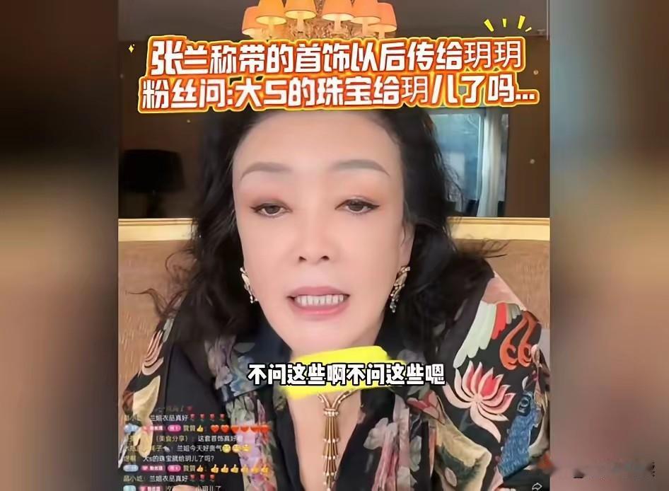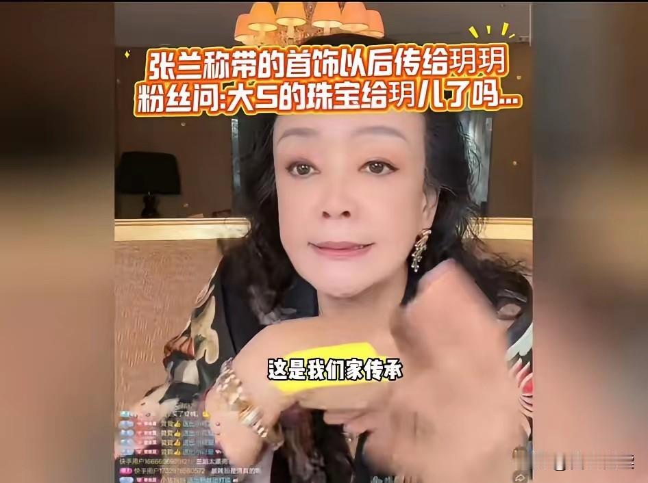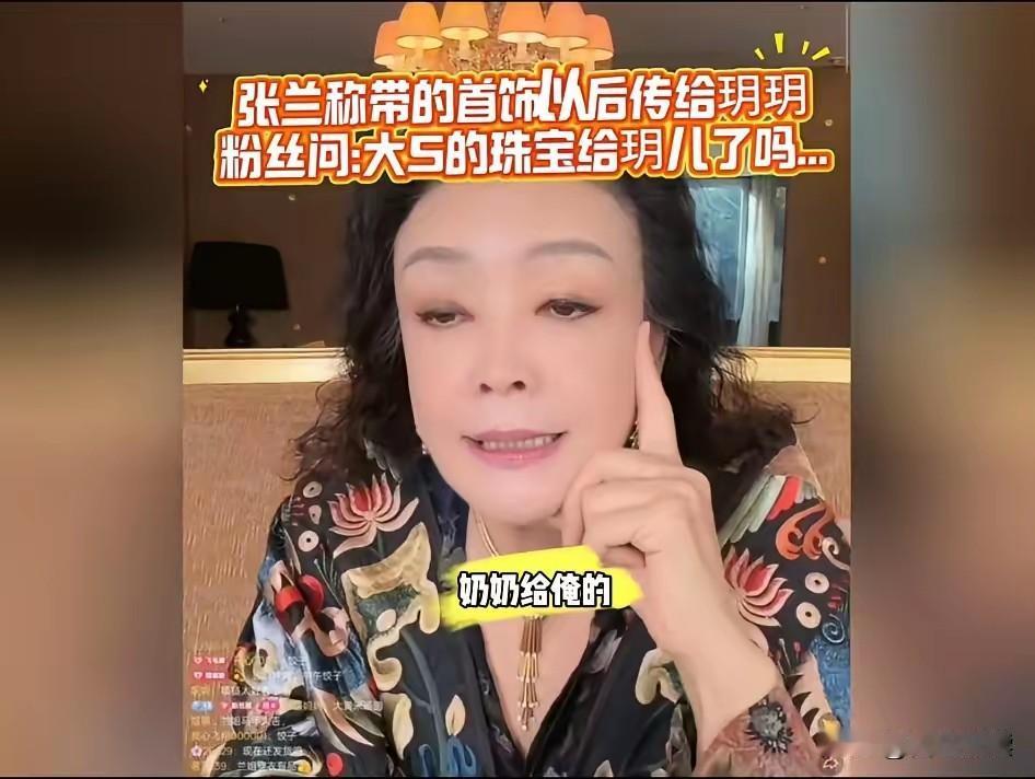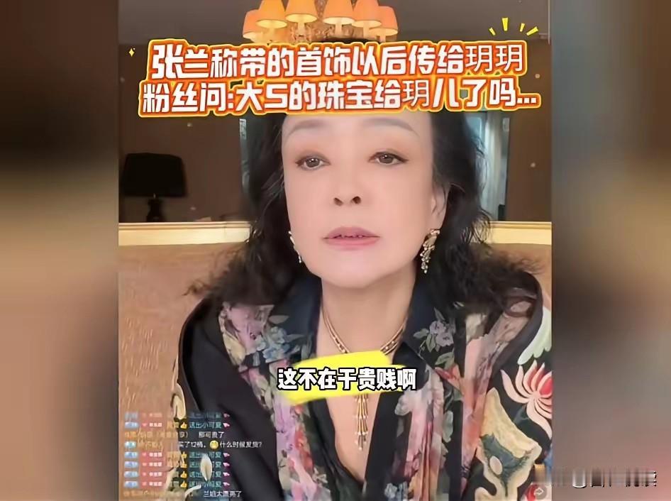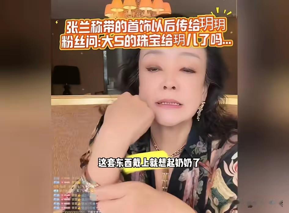 就像马筱梅说的 她的孩子压根不需要争什么遗产 孩子外祖父留给他的就够用了 这不战兰在直播 给网友展示她的珠宝 有网友问 大S的珠宝留给小玥儿了么 战兰话题一转 说当年她奶奶留给她的项链 她要留给长大后的小玥儿 价格没有贵贱 重在传承 S家把大S的东西霸占了 但是汪奶奶这里给补上 一家人只要幸福开心就好