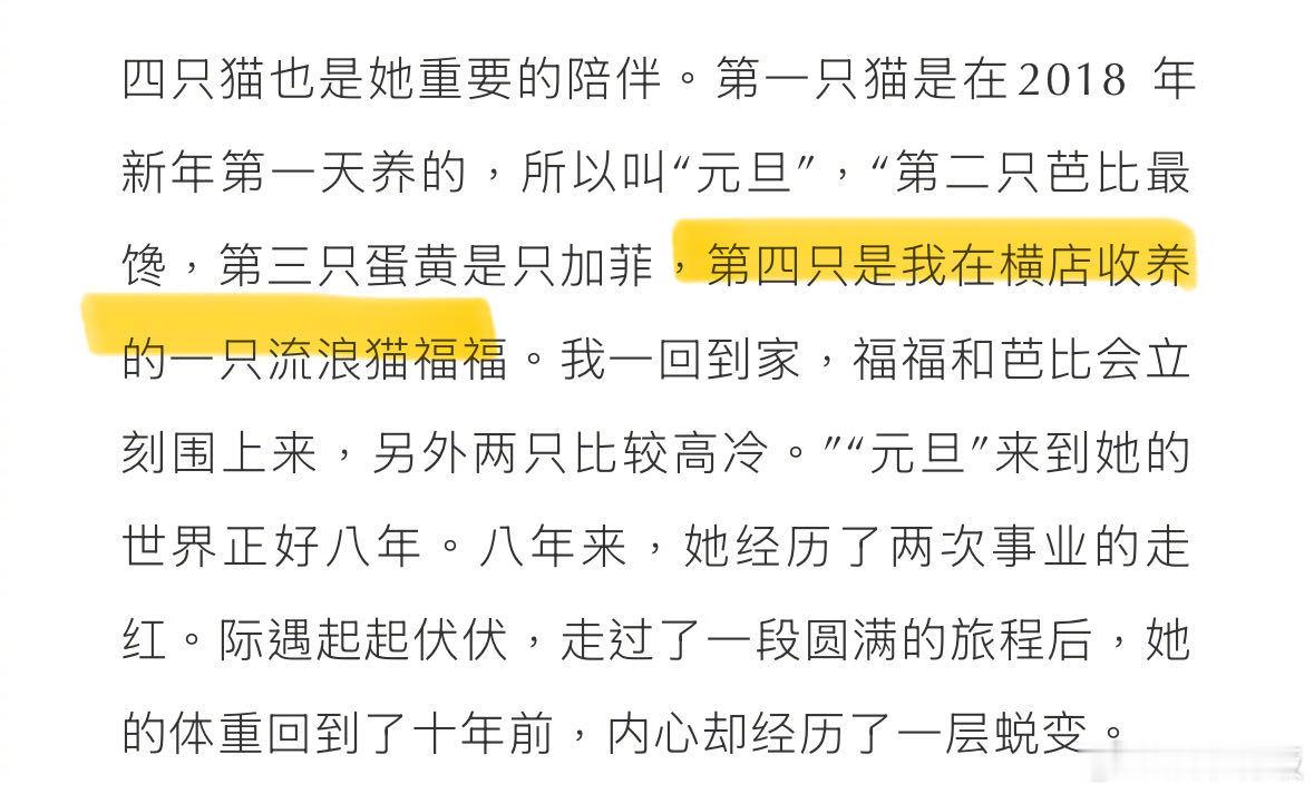 彭小苒曾在横店收养流浪猫 彭小苒最新采访透露养了四只猫,“福福”就是在横店拍戏时救下的流浪小猫,低调又有爱心的美女一枚 彭小苒