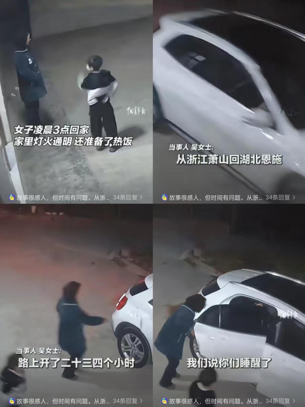 泪目!夫妻凌晨3点到家,全家彻夜等候,这才是回家的意义 泪目了!近日,一对夫妻从浙江萧山开车20多个小时赶回湖北恩施过年,看哭无数在外游子。 因为要凌晨3点才能到家,妻子特意提前叮嘱家人早点休息,不用等他们。可她怎么也没想到,自己在家人心里,分量重到让所有人都舍不得睡。 当夫妻俩凌晨赶回家时,家里早已灯火通明。老人和孩子全都穿戴整齐,守在门口翘首以盼,一整晚都在等着他们进门。桌上不仅有热饭热菜,还特意炖了香喷喷的排骨汤,就为给一路奔波的两人接风洗尘。 车子刚进院子,孩子们就欢呼着扑上来,老人笑着上前迎接。一路的疲惫,在这一刻瞬间烟消云散。女子当场落泪:不管有没有钱,这就是回家的意义。 这段视频引发无数网友共鸣。大家纷纷表示,这样的家庭氛围,就算吃白水煮面也愿意回。有人说,父母总会等自己到家才开饭,床铺得暖暖和和;有人说,七十多岁的老人,凌晨依然守在门口等候,这份牵挂比什么都珍贵。 我们总以为,回家要衣锦还乡、要风光体面。可真正的家,从来不在乎你赚了多少钱、混得好不好。它只在乎你平不平安、累不累、饿不饿。 回家的意义,从来不是大富大贵,而是有人为你留一盏灯,为你热一碗饭,无论多晚,都有人真心实意盼你归来。全世界都睡了,只有家人在等你,这份偏爱,就是最珍贵的礼物。 年关将至,愿每一个赶路的人,都有一盏灯为你而亮,有一碗热饭为你而留,有一群人,满心欢喜等你回家。这就是最平凡、最温暖、最让人泪目的幸福。