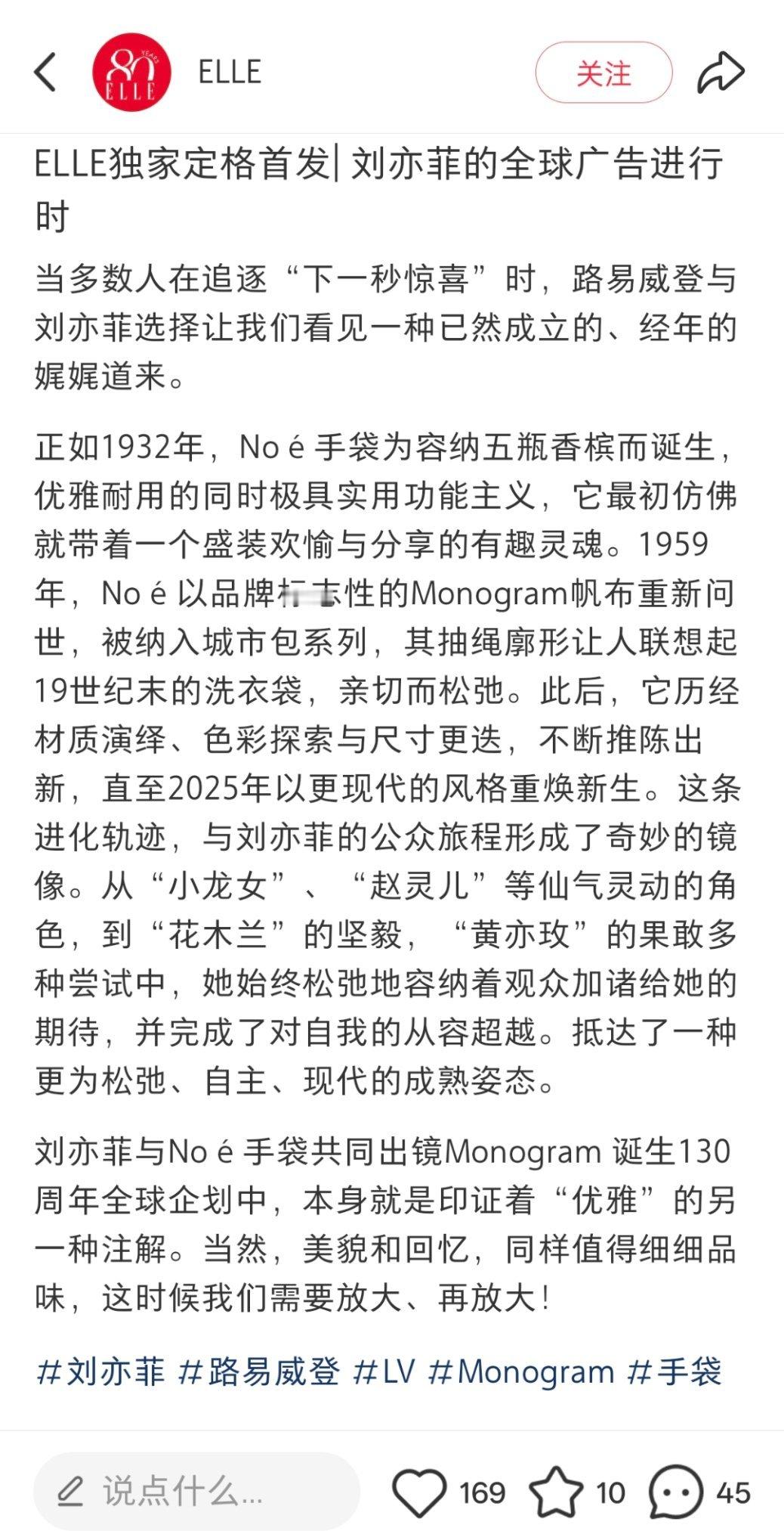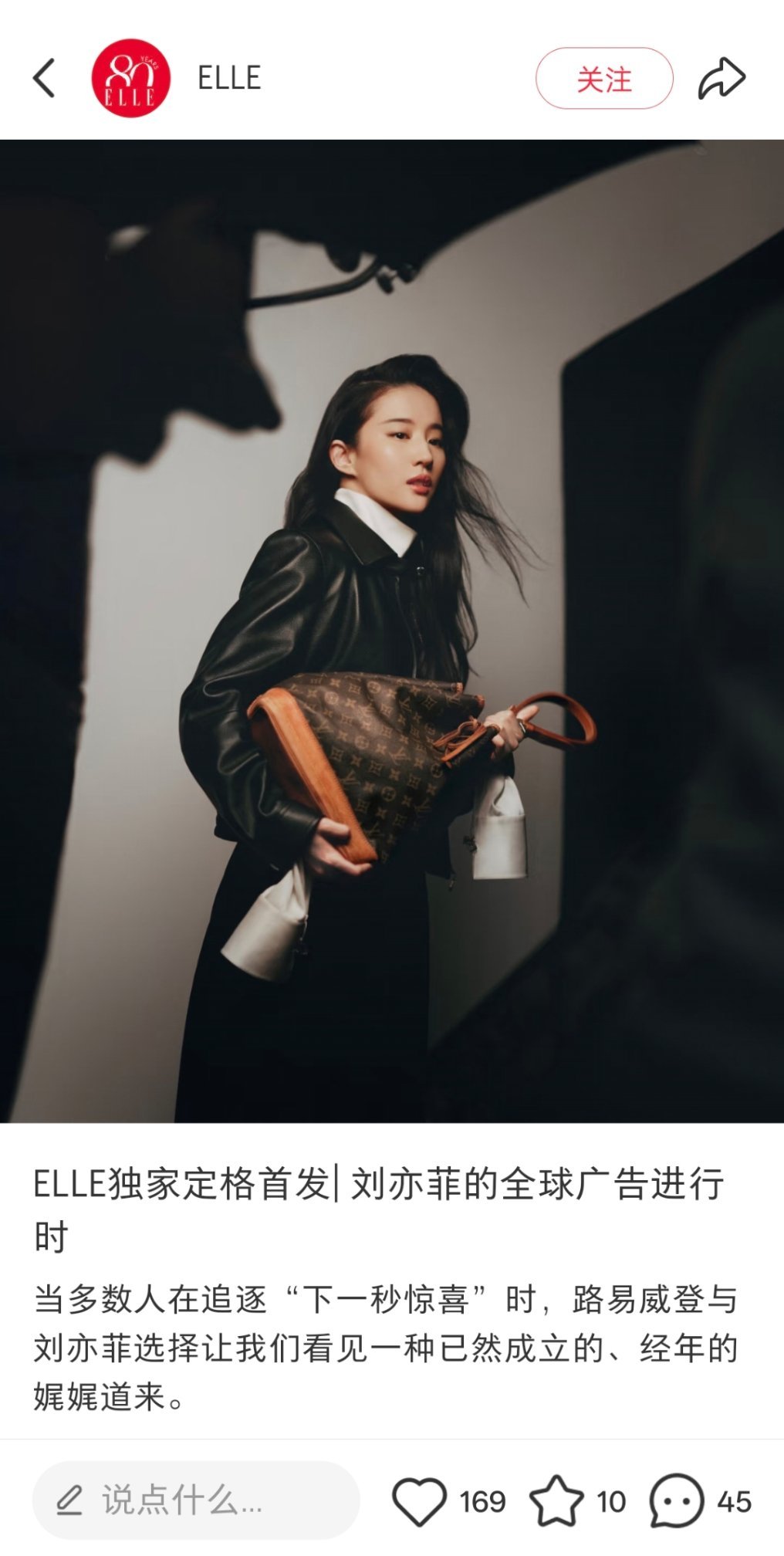 不愧是LVMonogram130周年,ELLE独家首发刘亦菲广告