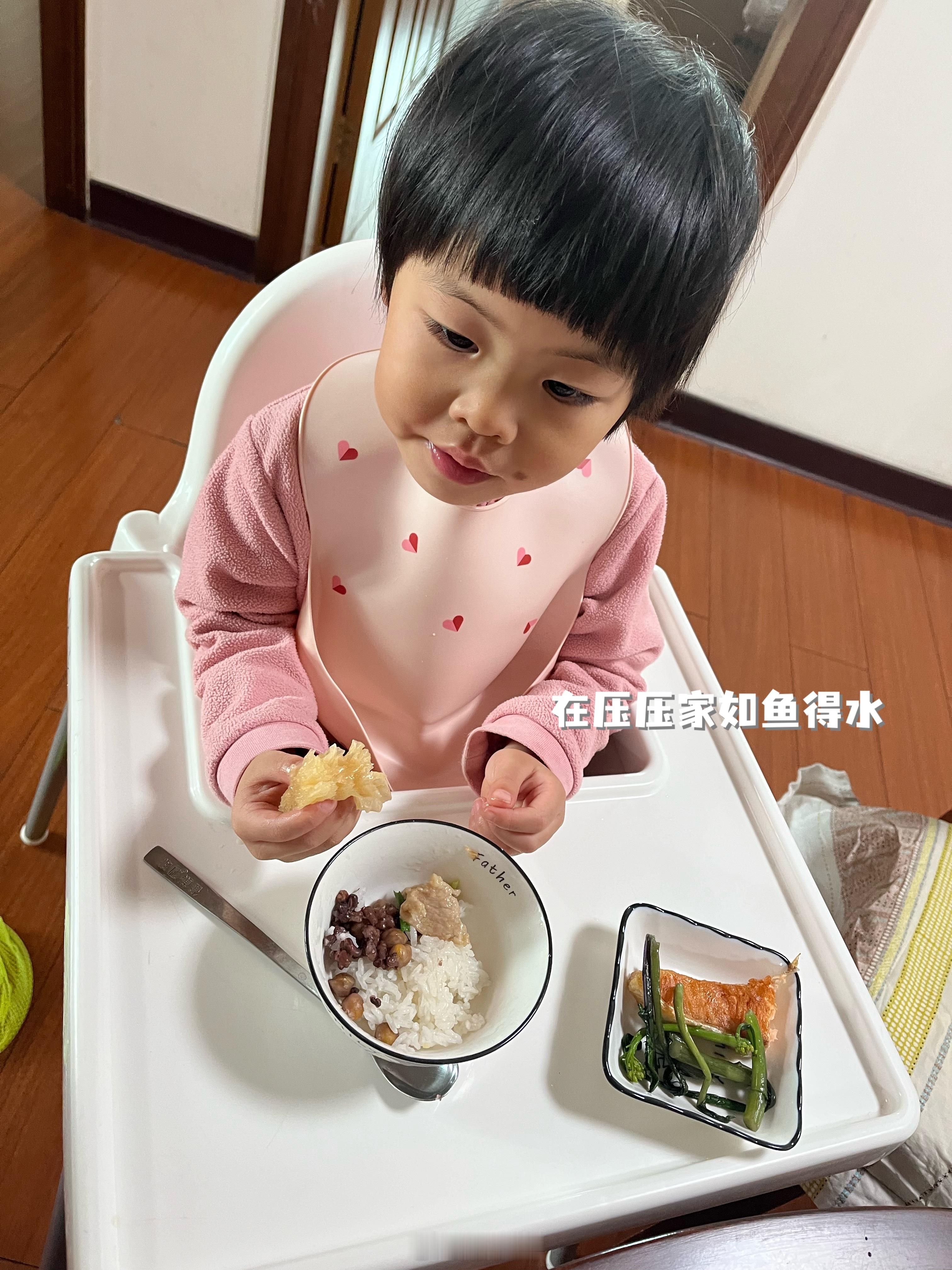 首先她已经会自己吃饭了其次她离了我,我离了她,都没啥事(但是离了压压可能不行