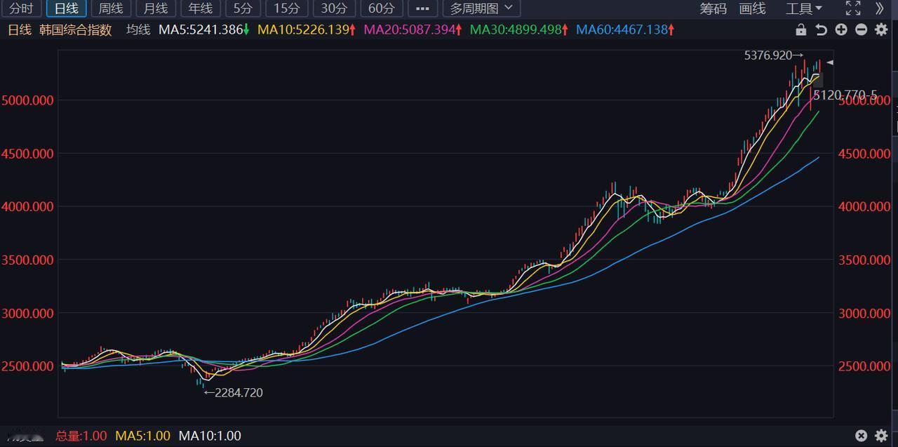 看看隔壁韩国这股指走势,再看看咱们的,这真的是小巫见大巫了! 今天韩国股指再度大涨1个点,这陡峭的走势,真的让人羡慕。而大A这边才4000点出头,今年的涨幅也明显不及隔壁,还得加油努力啊。 现在量能每天都在萎缩,看来不少资金节前都开始变得谨慎,越来越保守了。 而散户集中较多的中小盘个股则表现相对活跃,美银更是发报告建议投资中小盘。这也说明未来中小盘的成长性也明显优于大盘股。 大盘股因为基数大,船大不好随便转向,而小公司则弹性大的多,更能有机会创造惊艳的业绩。 大家觉得呢?