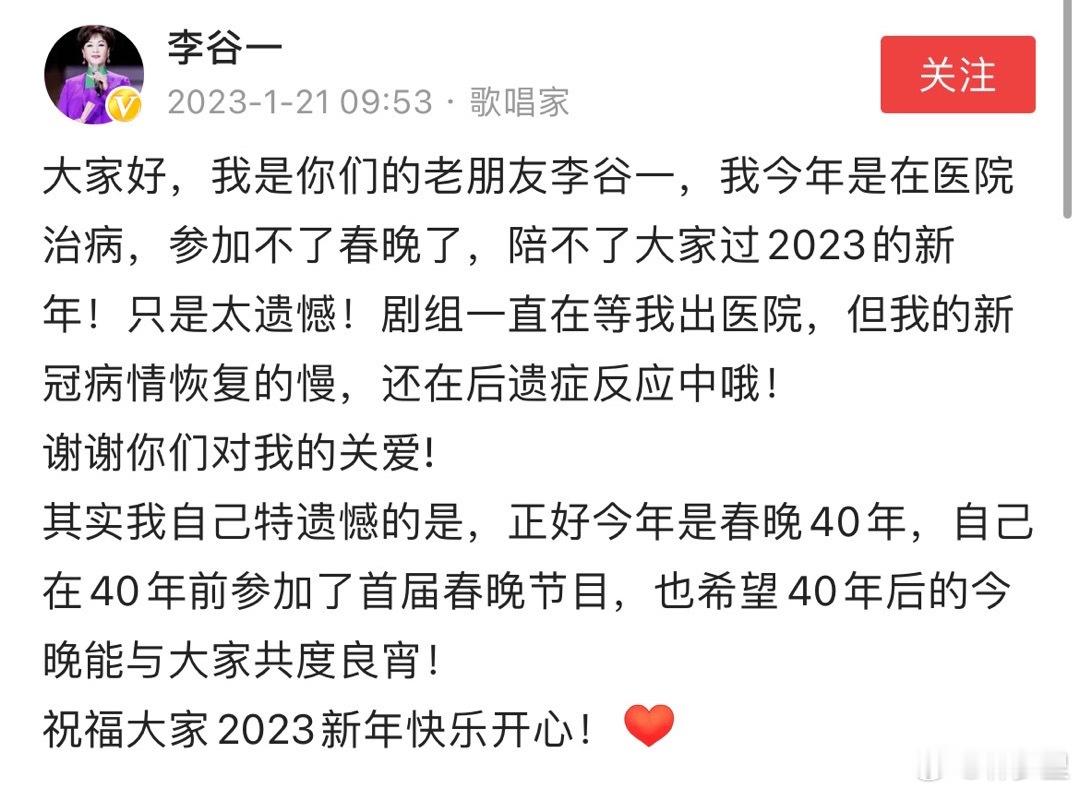 李谷一确认缺席马年春晚自从新冠后,李谷一奶奶这几年都没参加了…身体状态看来还没恢